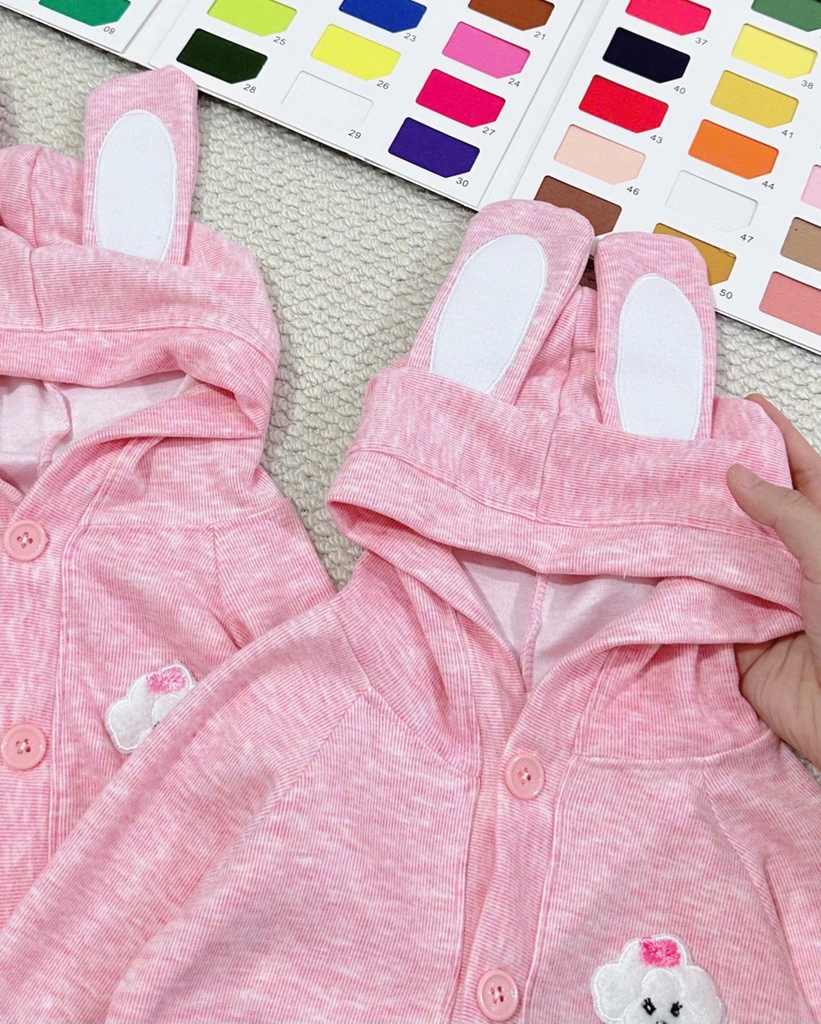 BT658-BỘ THUN DÀI TAY BÉ GÁI TAI THỎ THÊU