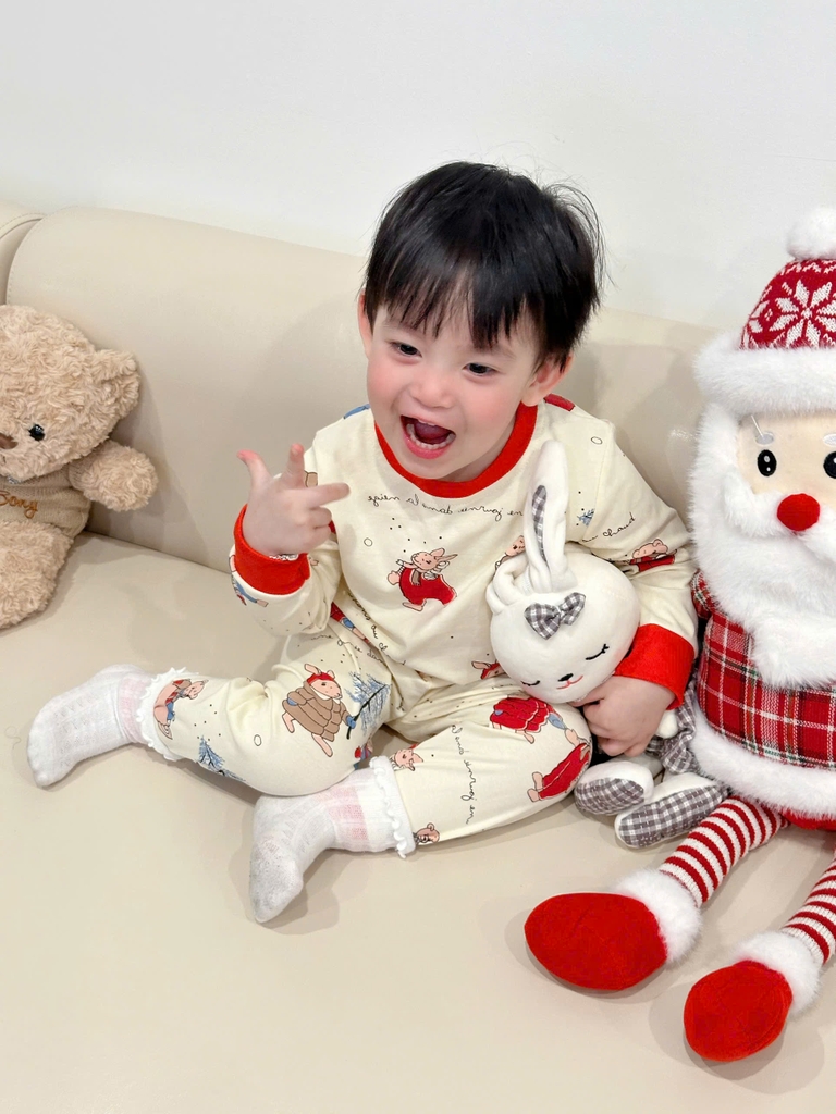 Đánh giá BT697- Bộ cotton zip viền đỏ họa tiết Thỏ tuyết màu be vàng