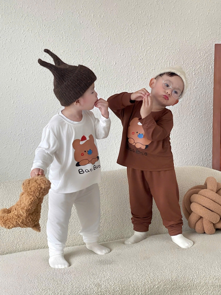 BT698-Bộ thun lạnh 3 màu họa tiết in TRẮNG-XANH-NÂU