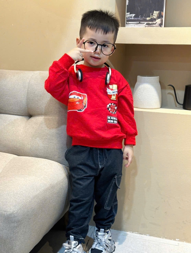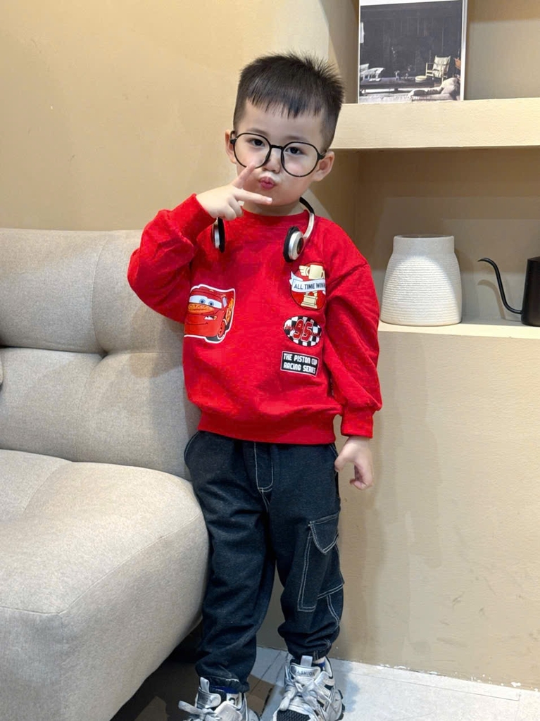 bt708- Bộ nỉ cua mềm Oto đỏ - quần đen in pet