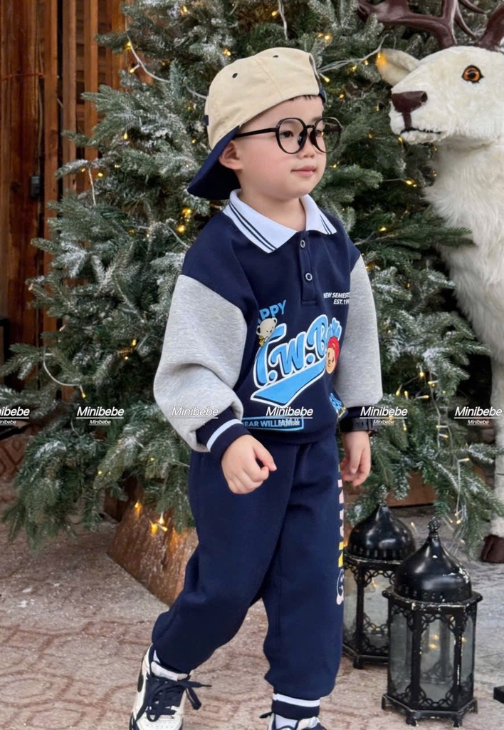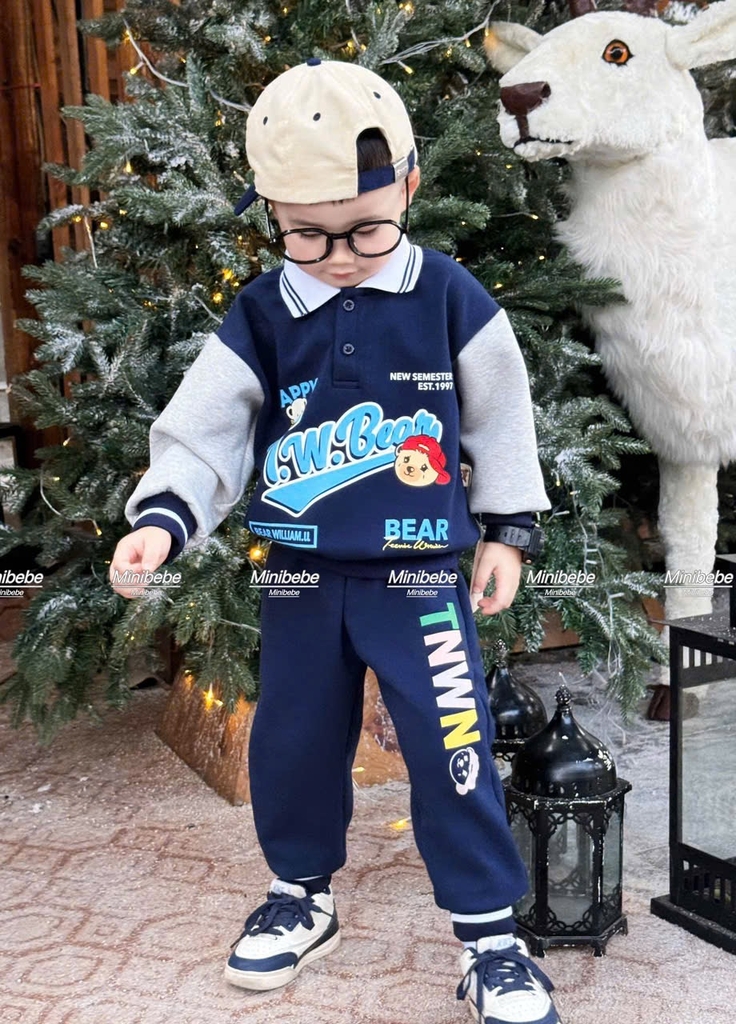 Bt714- Bộ polo phối BEAR xanh phối ghi in pét loại đẹp