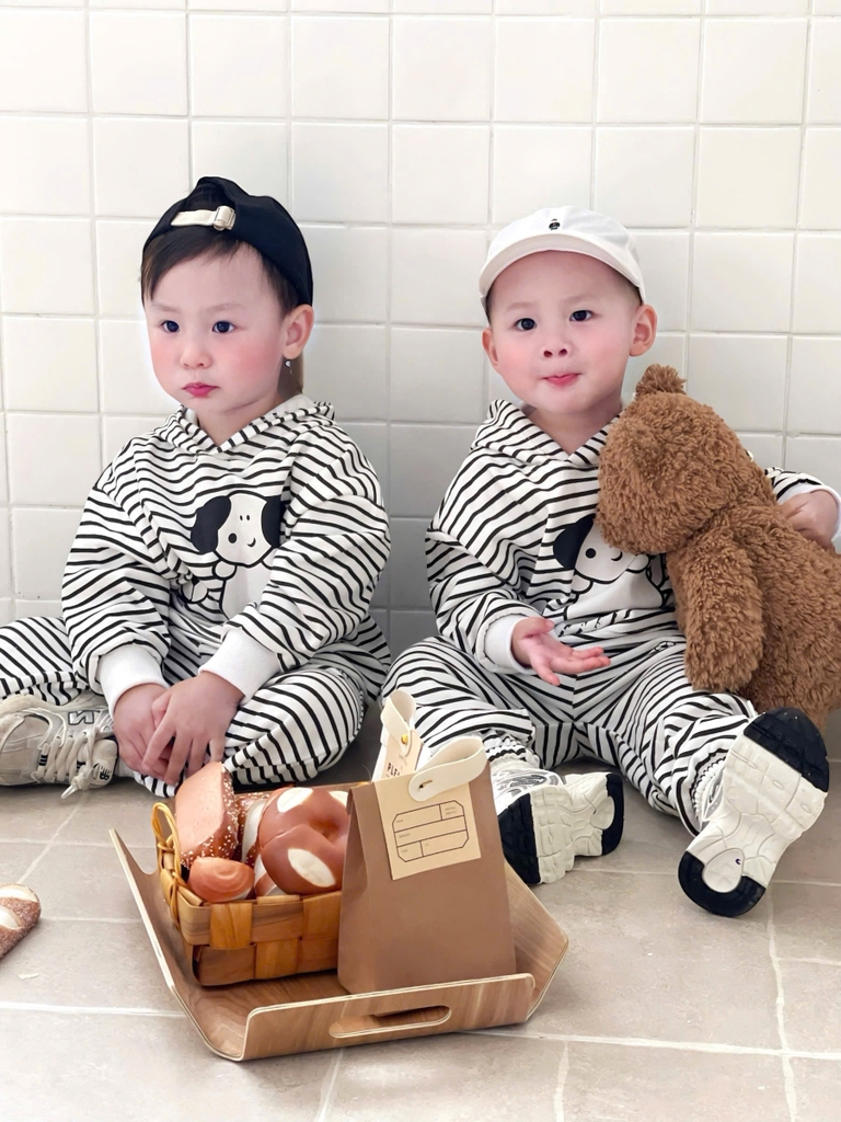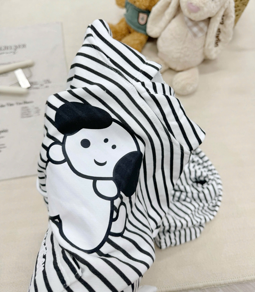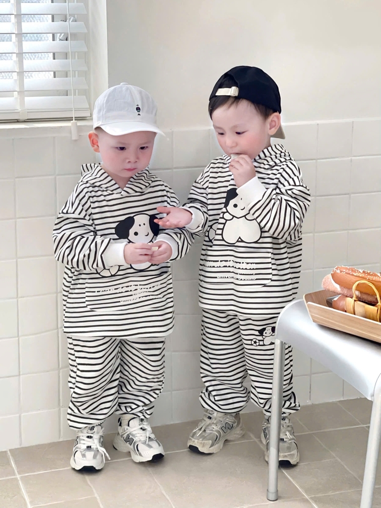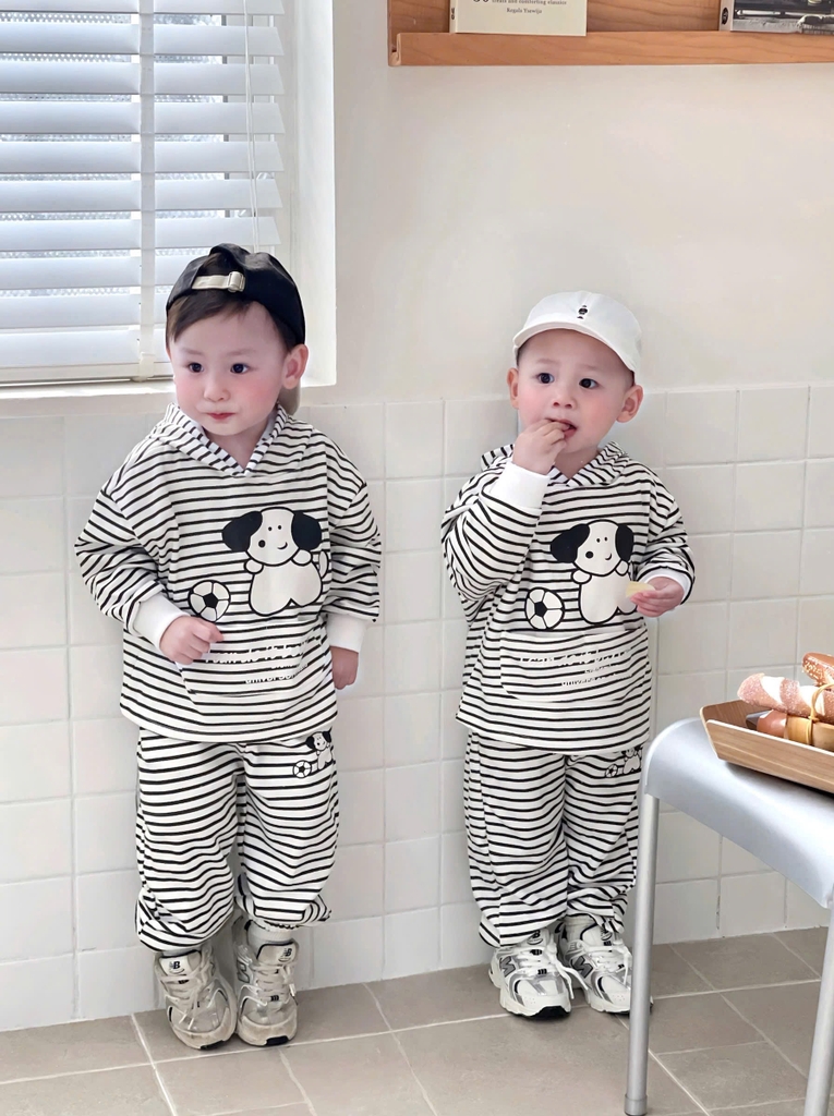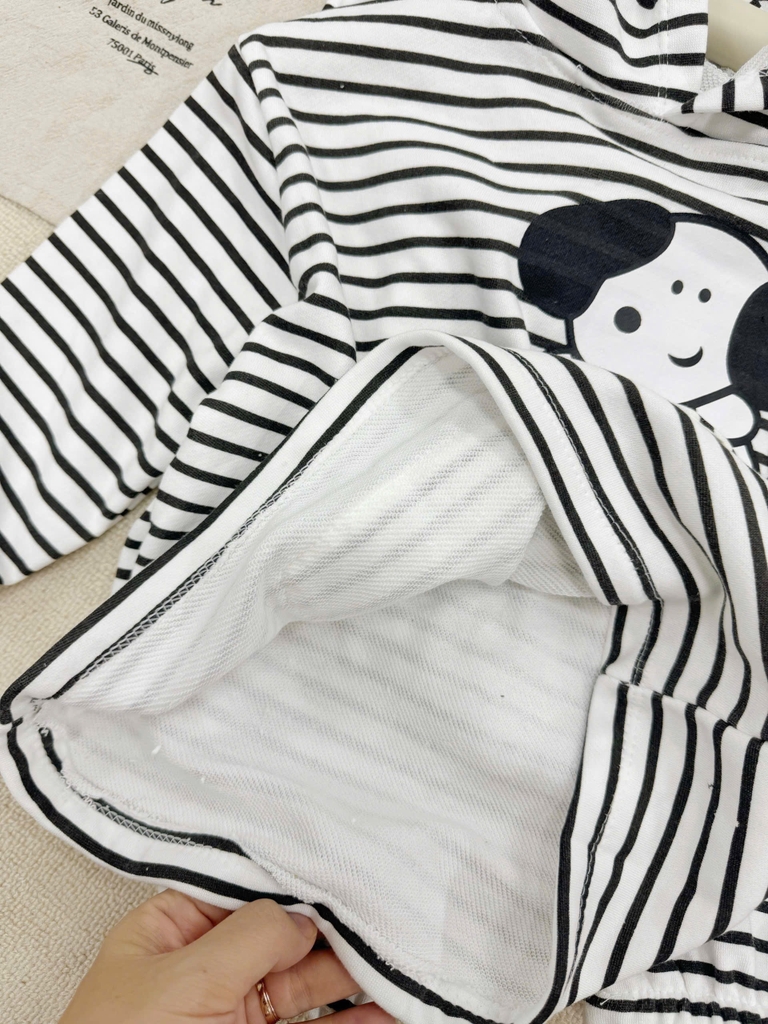 BT721- Bộ nỉ kẻ đen trắng Cún cho bé