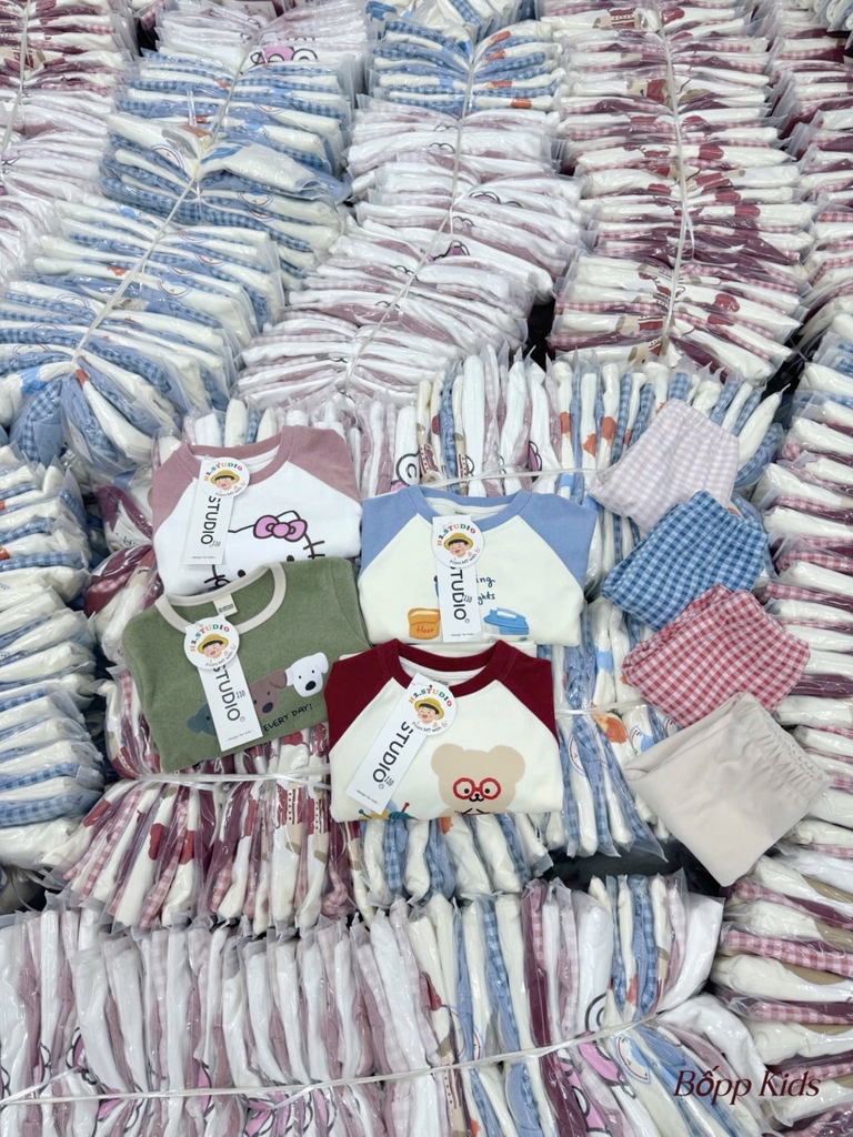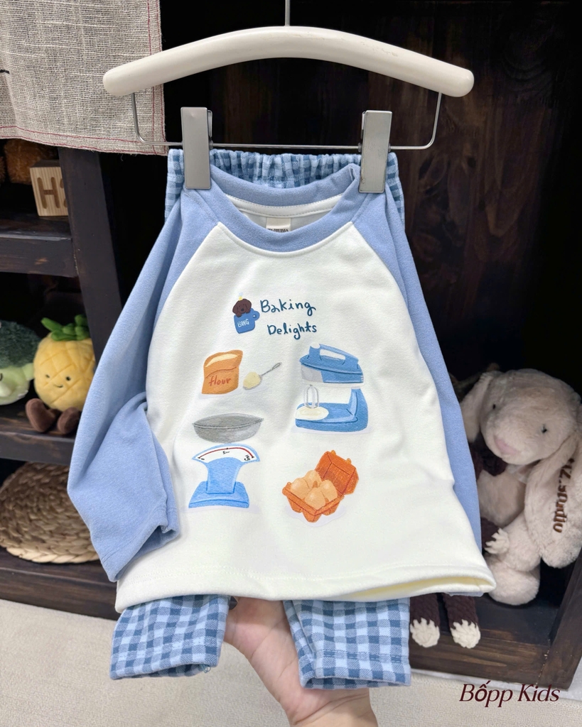 Bt771- Bộ pijama kẻ xanh-đỏ chất thô mềm loại đẹp