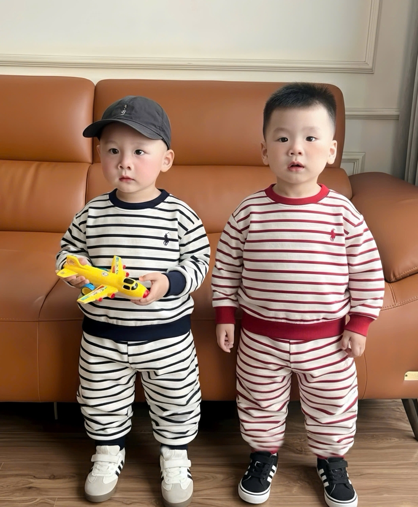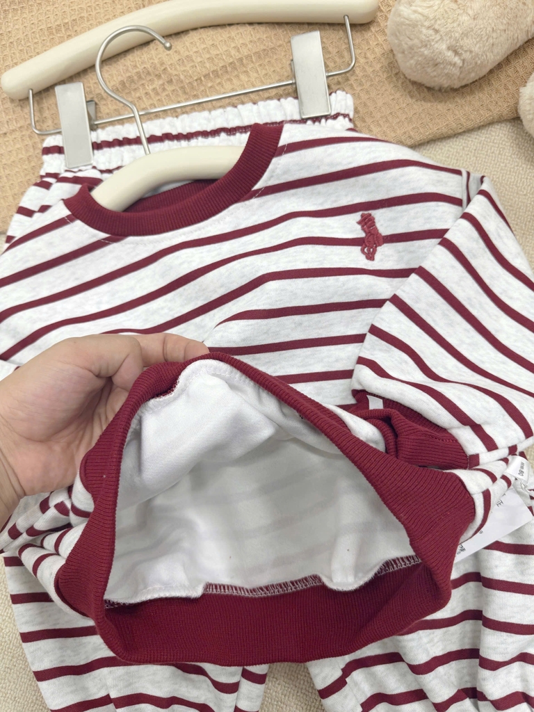 BT734- Bộ nỉ haida bé trai kẻ ngang đỏ đen