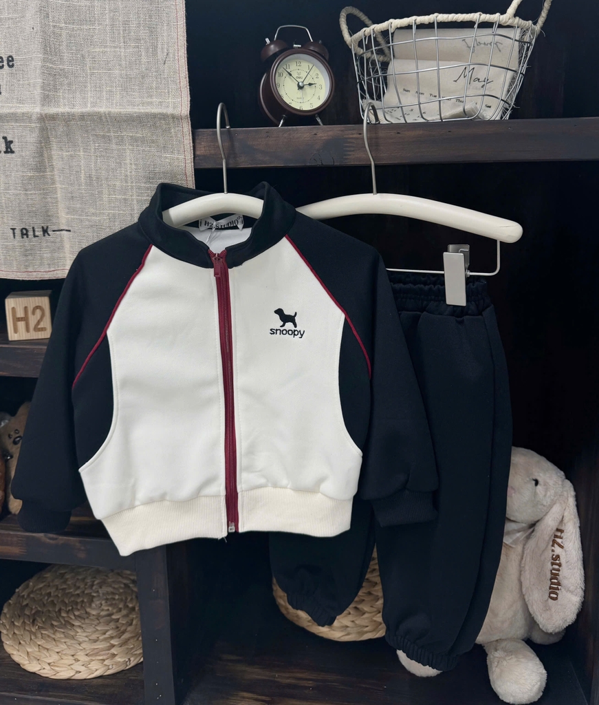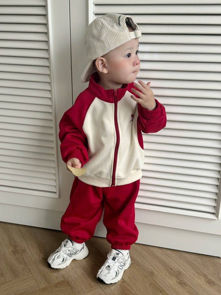 BT735- Bộ nỉ bé trai áo khoác kéo khoá phối quần chun bo ống 2 màu đen đỏ