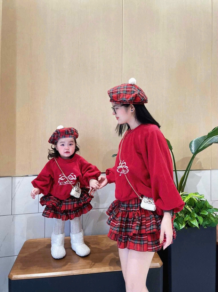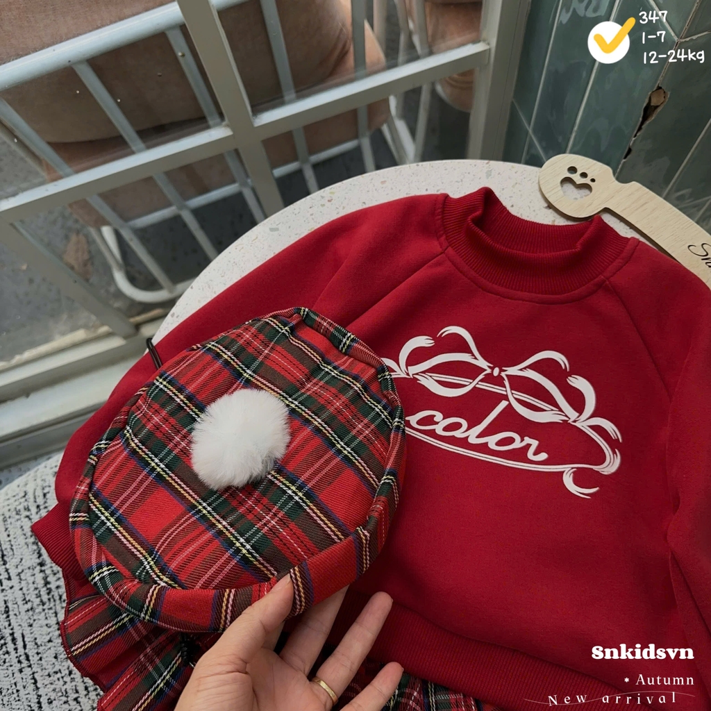 Đánh giá Bt743- set váy nỉ haida đỏ mix CV kẻ kèm mũ nồi bé gái