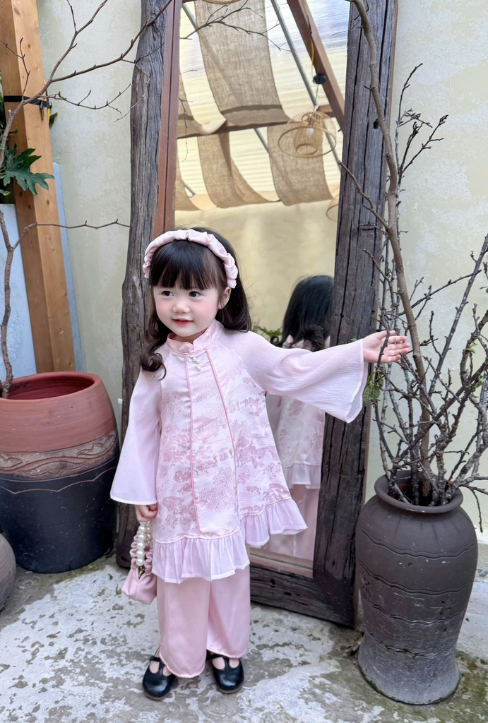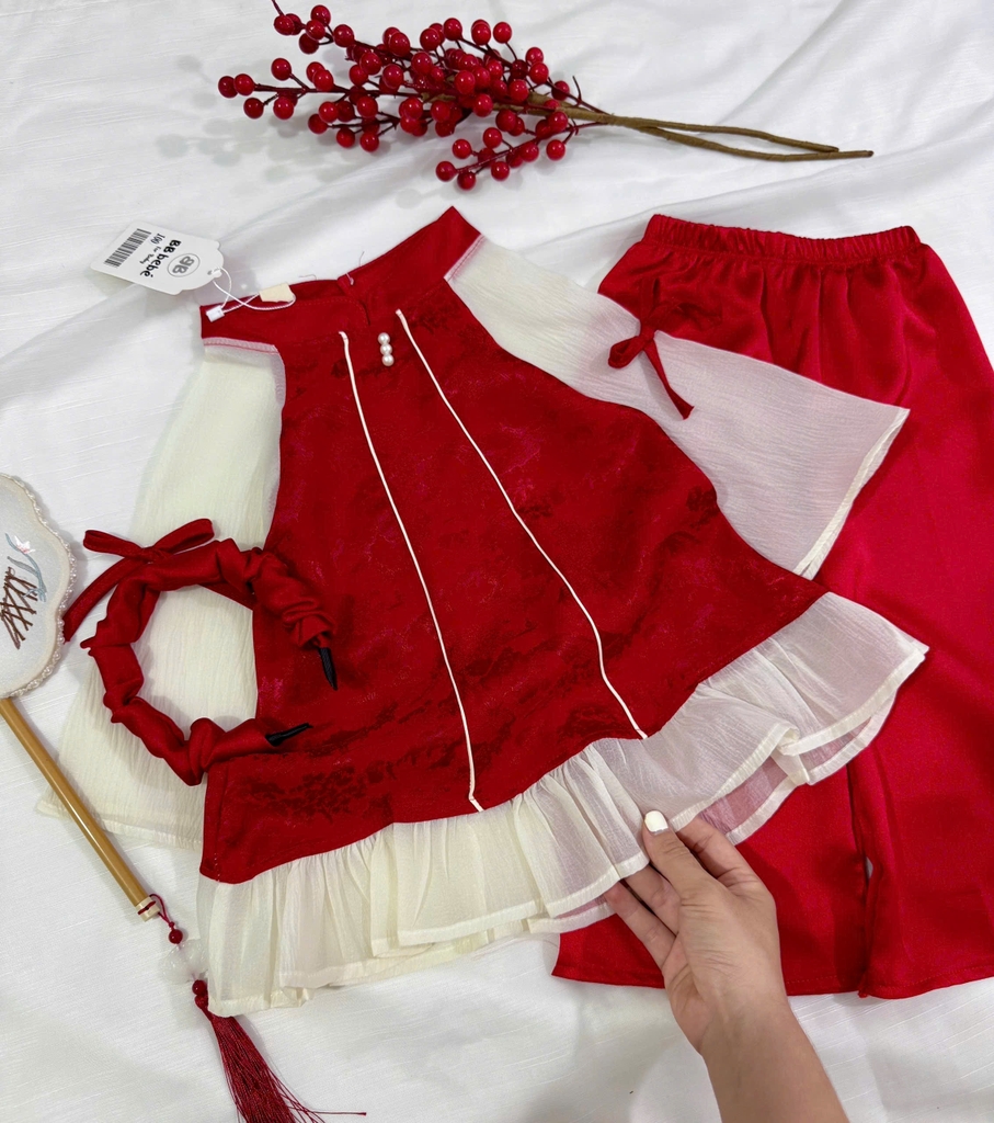 Đánh giá BT748-Áo dài cách tân bé gái phối ren tặng kèm bờm tóc 2 màu đỏ hồng
