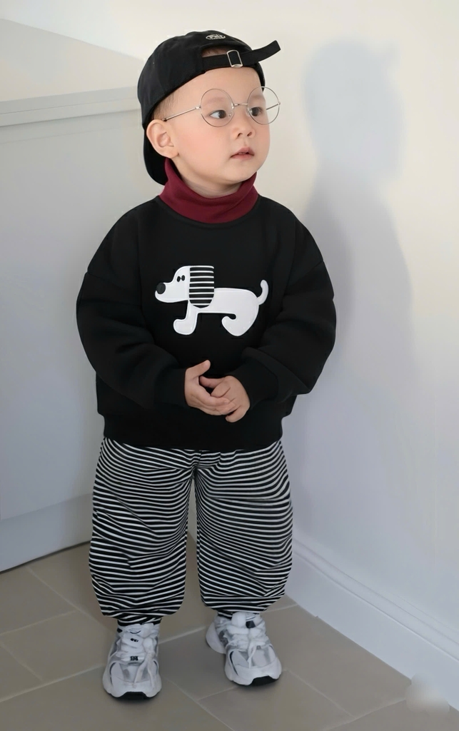 Bt751- bộ Cún tai nổi quần kẻ 3 màu chất nỉ haida