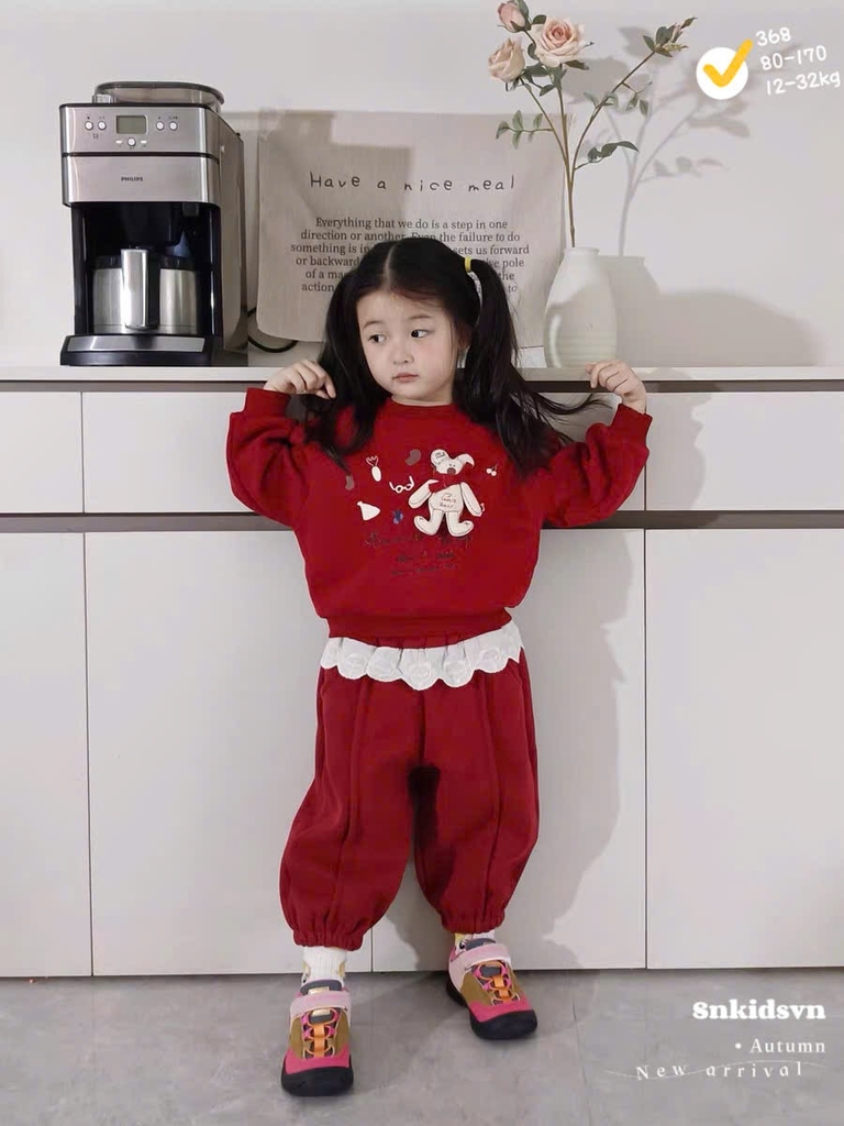 Đánh giá Bt758- Bộ nỉ đỏ viền ren trắng đính gấu nổi chất nỉ hai da cao cấp