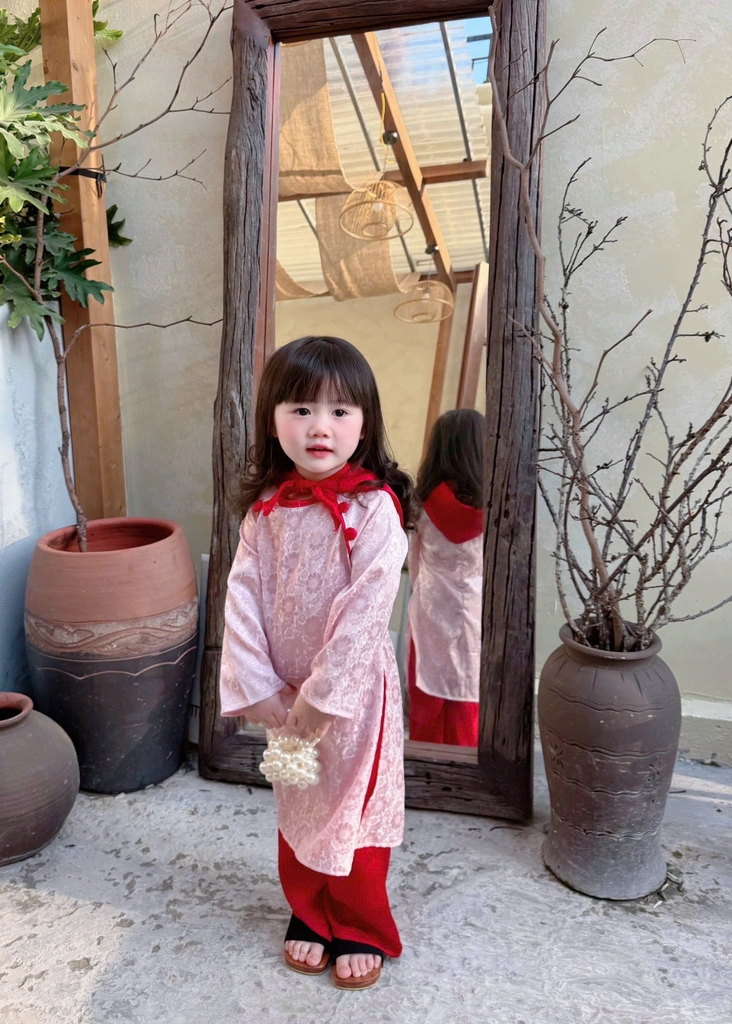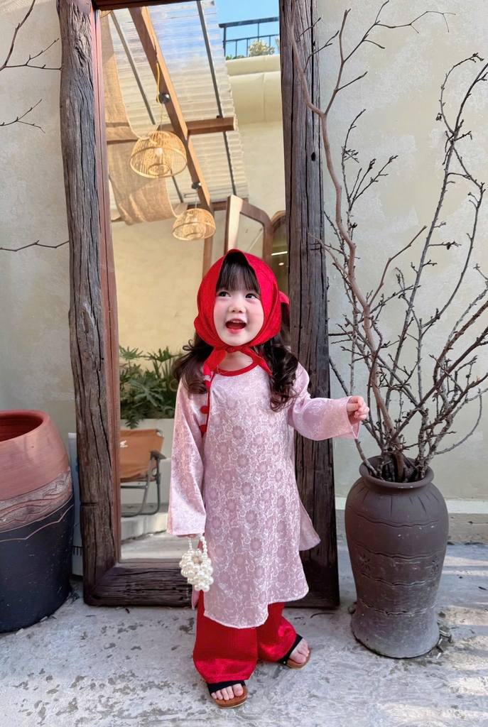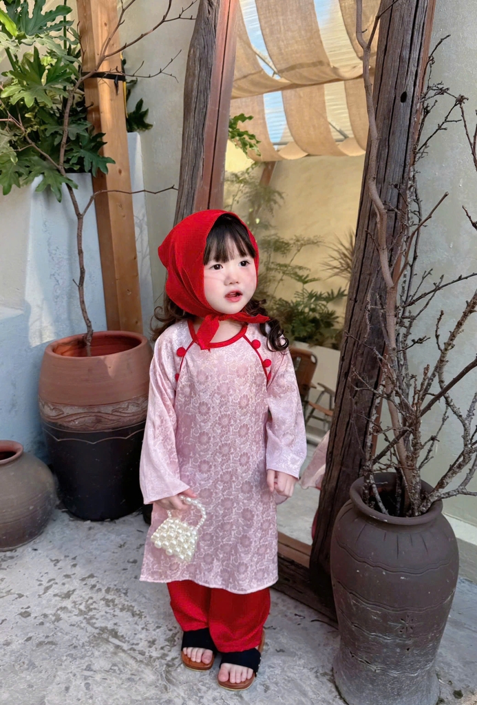 Đánh giá Bt767- Bộ áo dài bé gái màu hồng quần đỏ kèm khăn