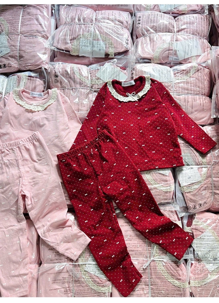 Bt774- combo 2 bộ zip lông viền ren đỏ-hồng bé gái