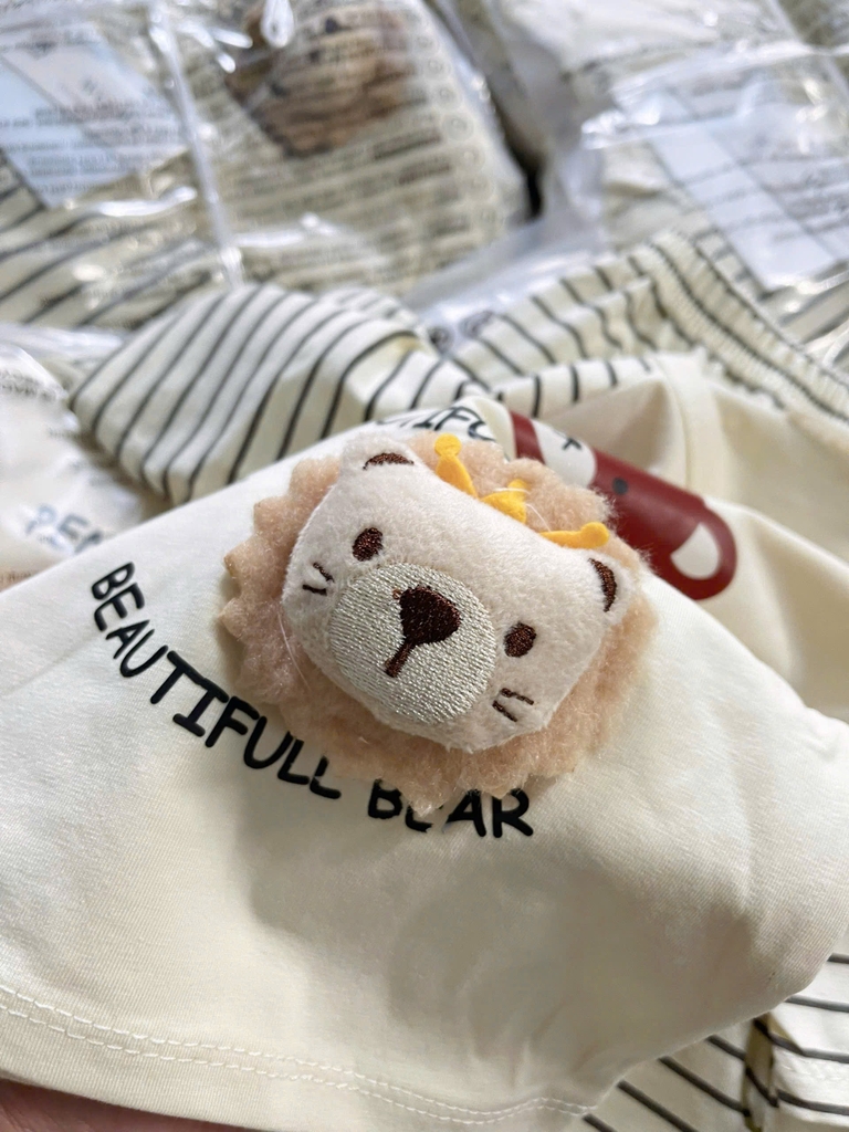 Đánh giá BT822- Bộ áo thun kẻ phối quần short hình gấu nhồi bông cho bé 8-25kg
