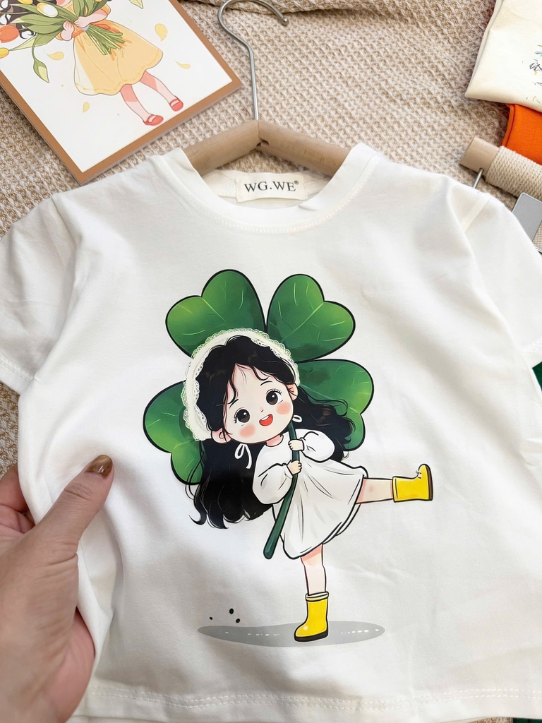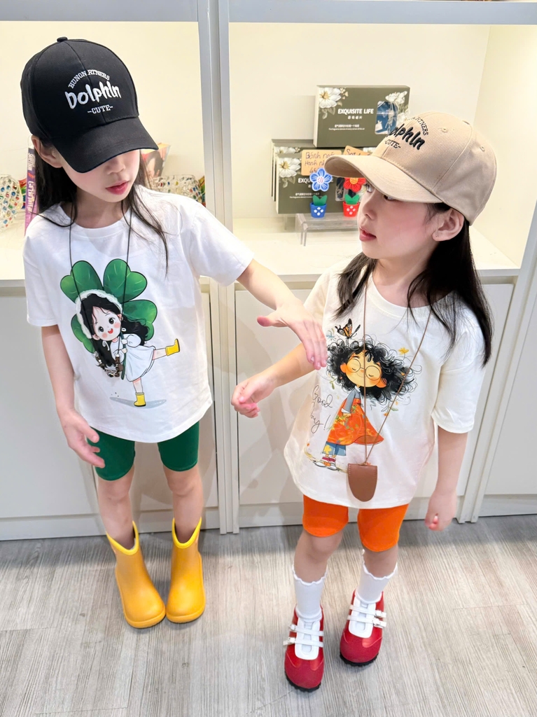 BT839-Combo 2 bộ thun cộc tay trắng cam xanh bé gái 9-26kg