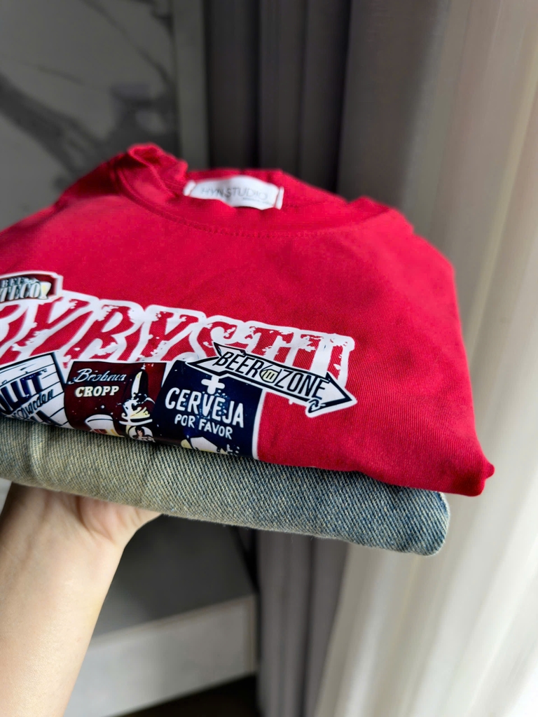 BT856-Bộ áo thun sát nách đỏ phối quần jean cộc cho bé 9-22kg