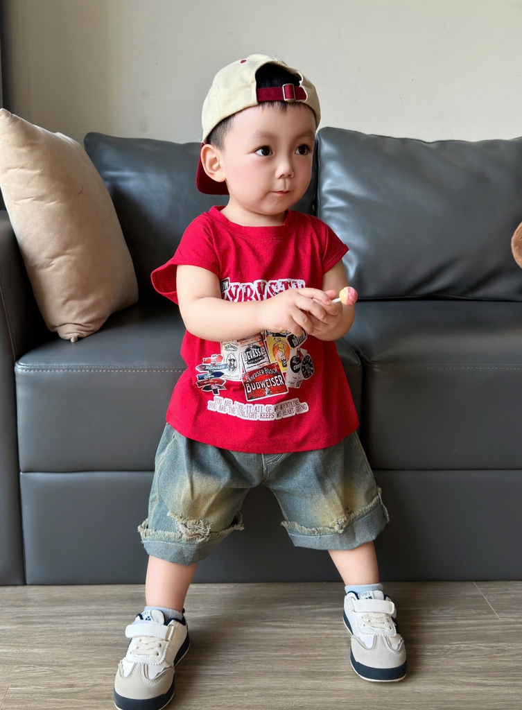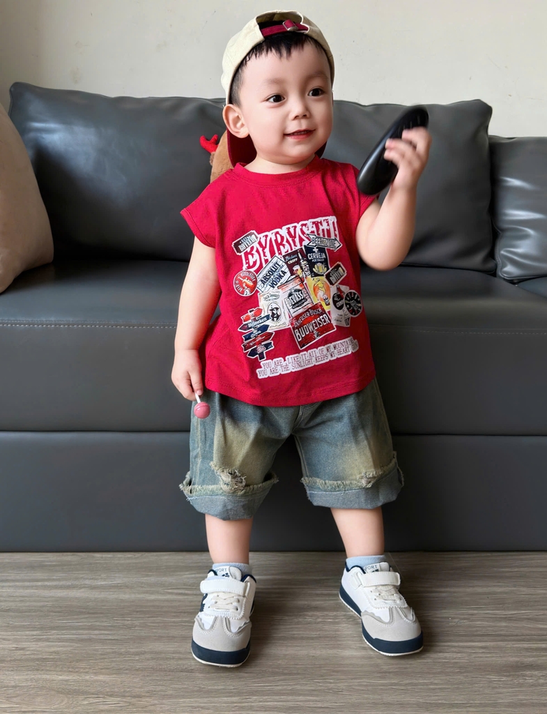 Đánh giá BT856-Bộ áo thun sát nách đỏ phối quần jean cộc cho bé 9-22kg