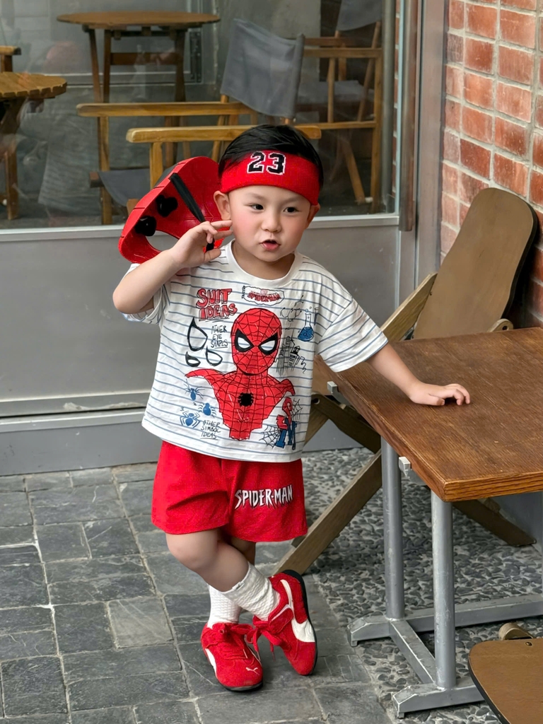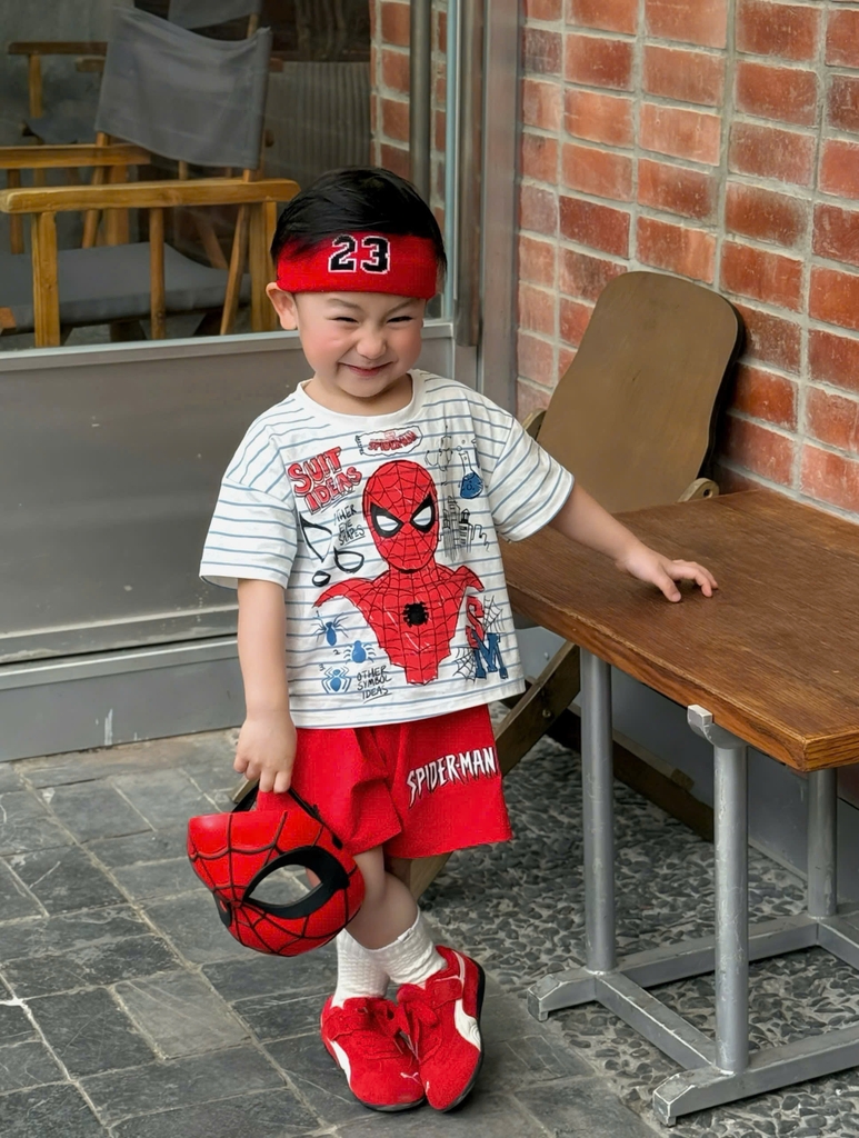 BT857-COMBO 2 bộ thun cộc tay Nhện Đỏ trắng cho bé 9-25kg