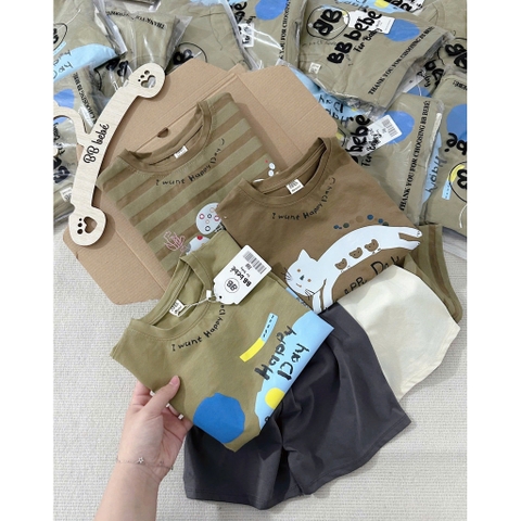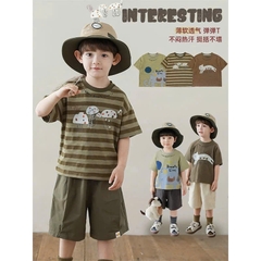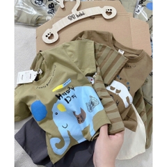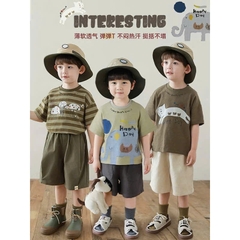 CB213-Combo 3 bộ thun cộc tay bé trai hoạ tiết khủng long màu xanh rêu maisushishop