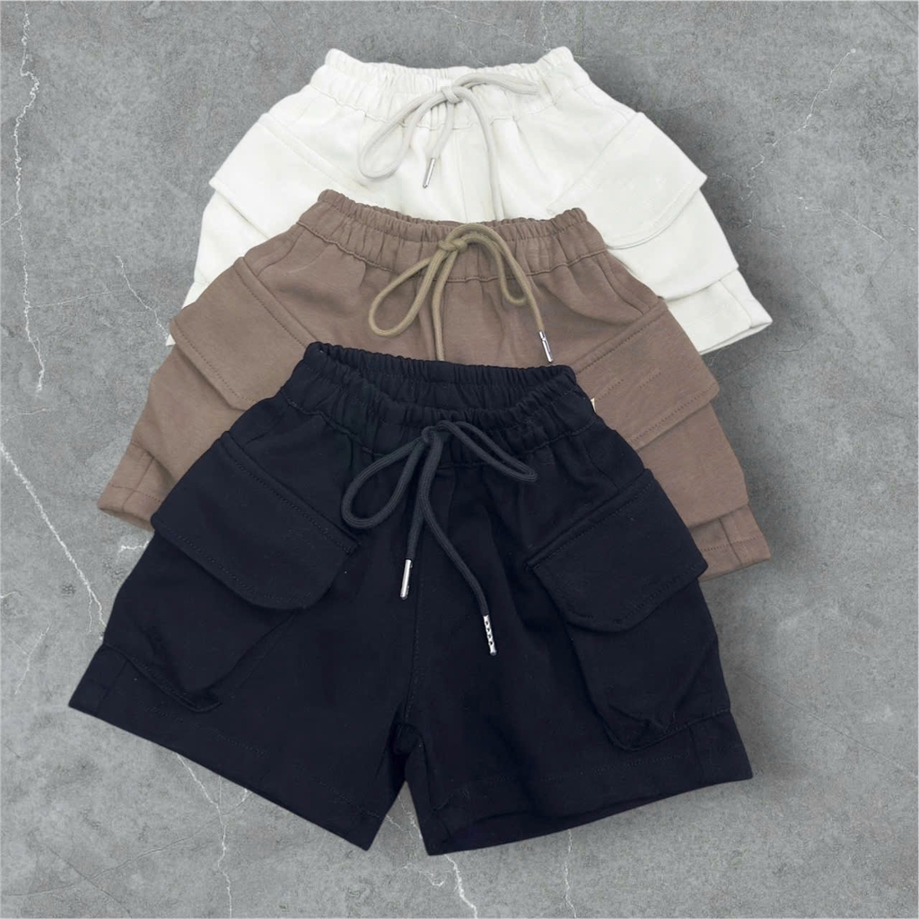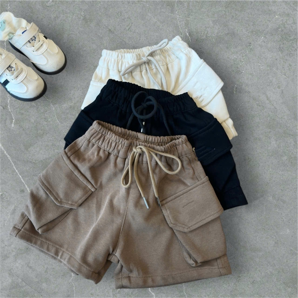 CB251- combo 2 quần short túi hộp chất nỉ mì bé trai màu basic