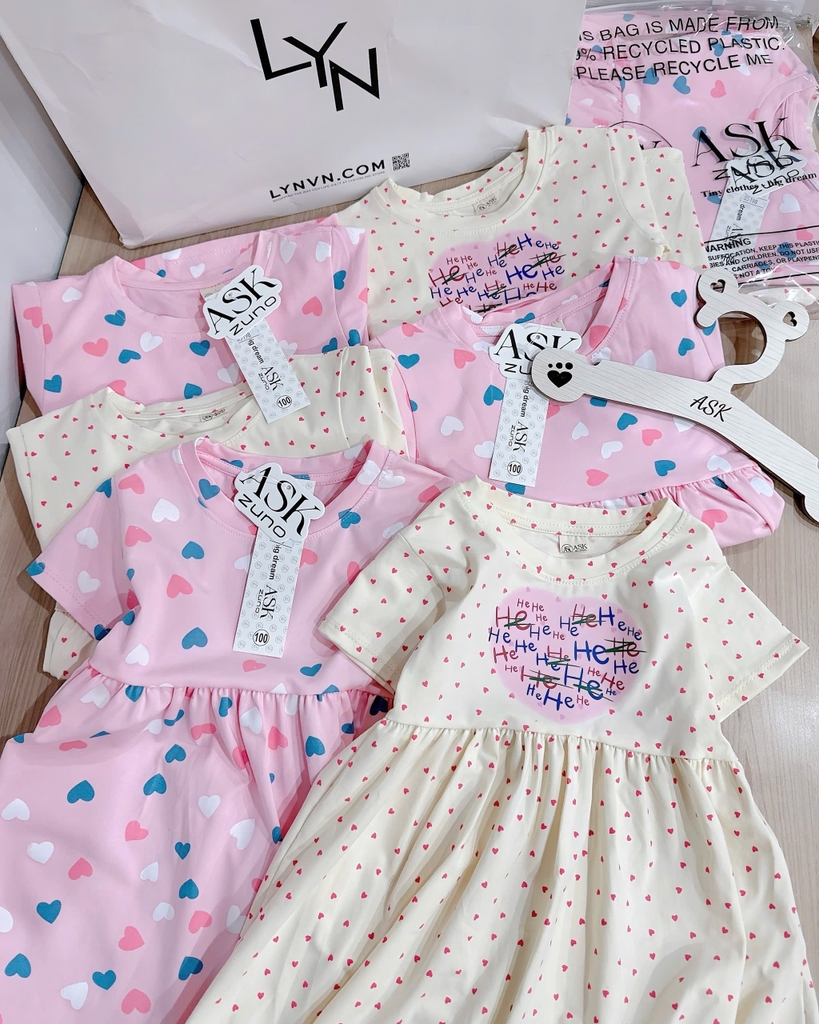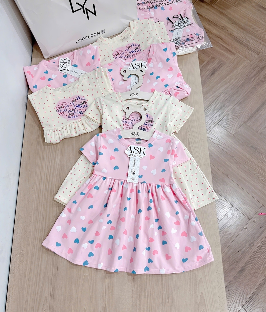 CB305- Combo 2 đầm tim xoè màu hồng bé gái