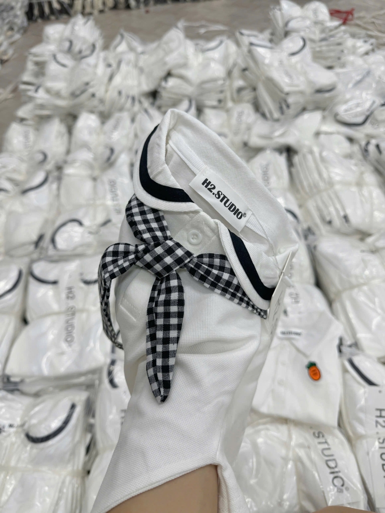 A527-Aó len cộc tay cài cúc xanh hàng nhà máy đủ tem