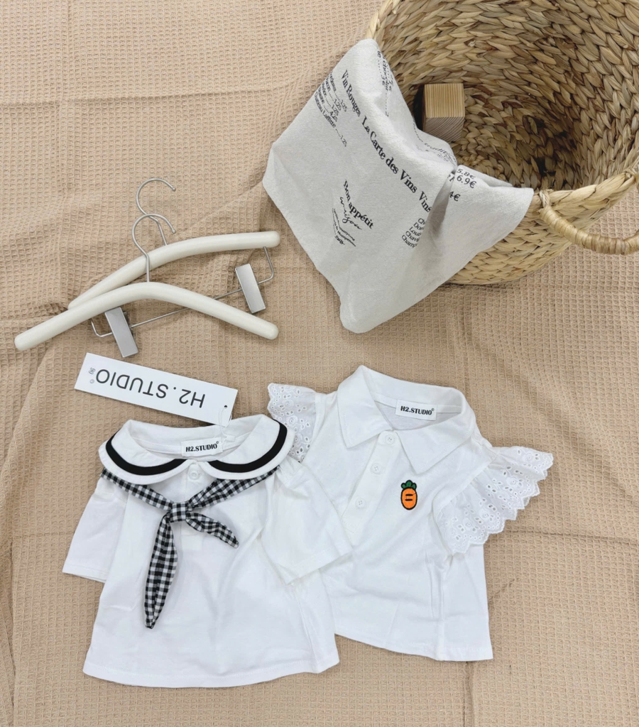 CB340- Combo 2 áo trắng cộc tay chất đẹp bé gái