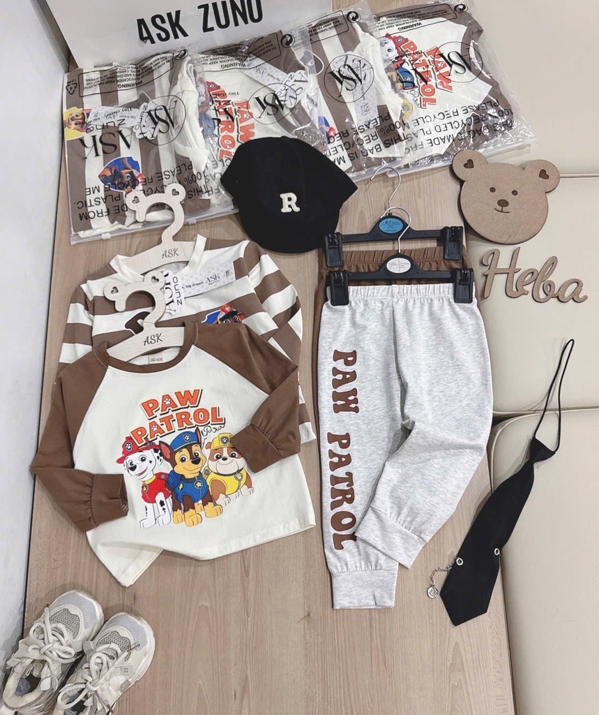 CB392-Combo 2 bộ thun dài tay thu đông Paw Patrol bé trai nâu trắng