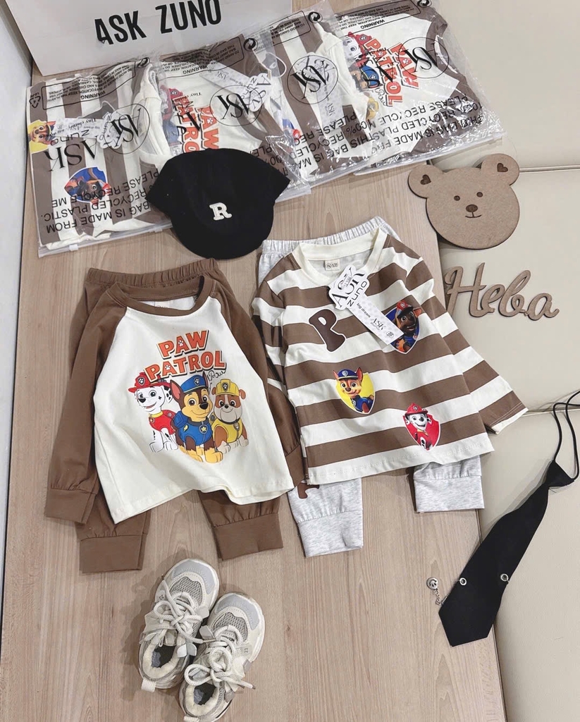 Đánh giá CB392-Combo 2 bộ thun dài tay thu đông Paw Patrol bé trai nâu trắng