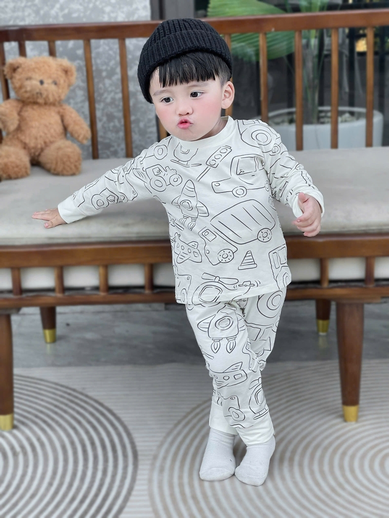 CB395-Combo 3 bộ thun dài tay bé trai hoạt hình OTO NÂU