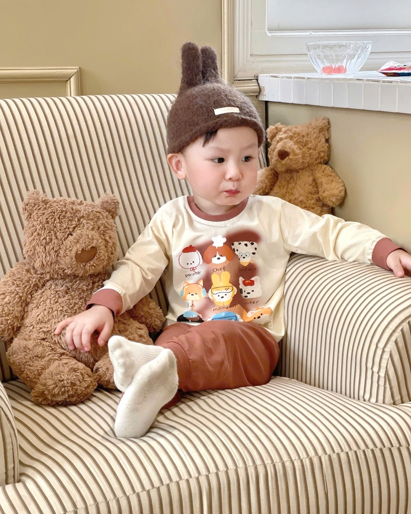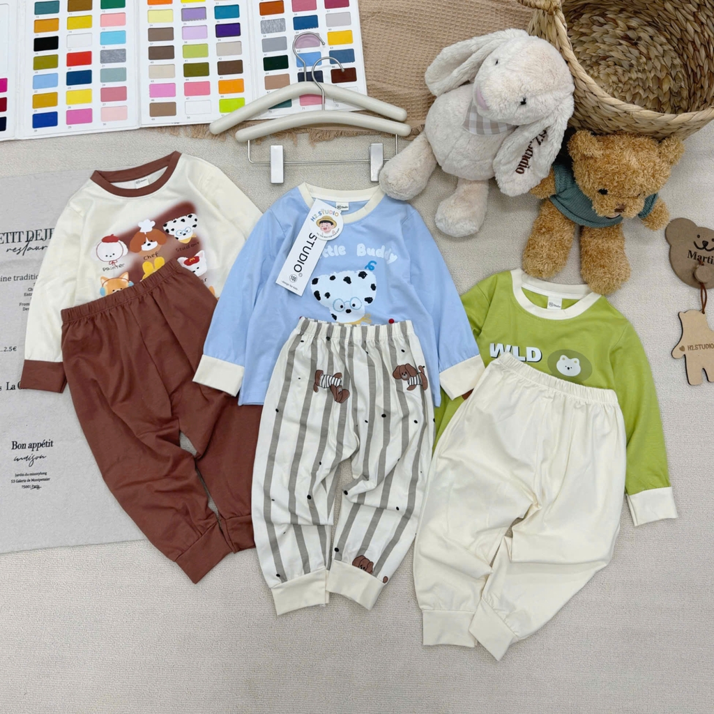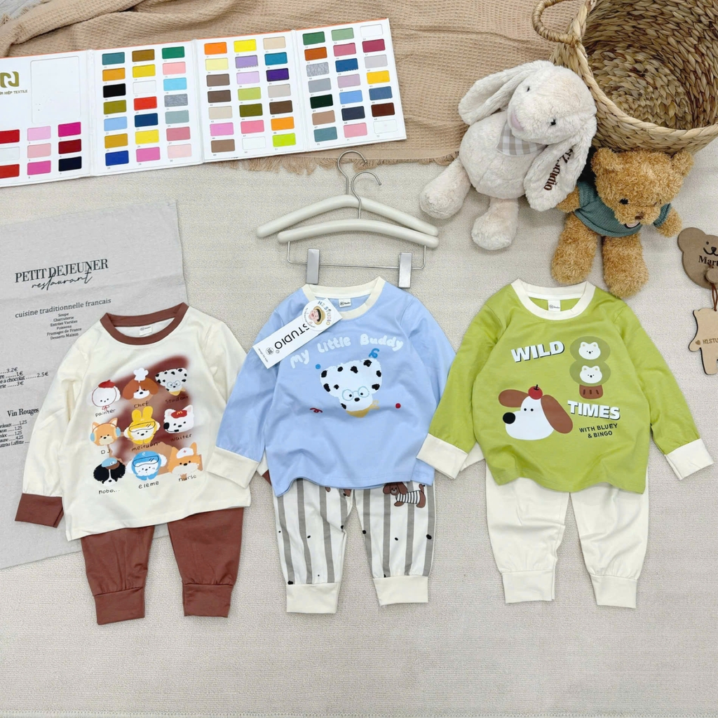 CB396- Combo 3 bộ thun dài tay bé trai CÚN sắc màu