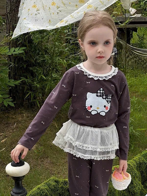 Cb420- Combo 2 bộ gái dài tay viền ren màu nâu hoa chất zip
