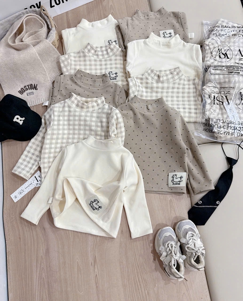 Cb422-Combo 3 áo díp lông giữ nhiệt cao cổ thêu gấu cho bé