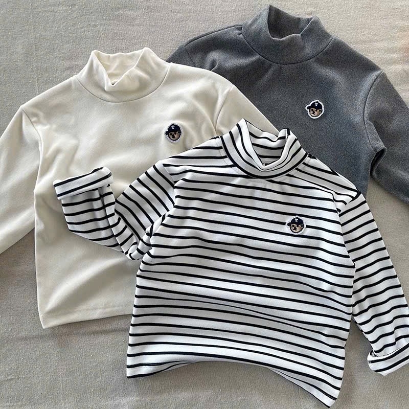 Cb422-Combo 3 áo díp lông giữ nhiệt cao cổ thêu gấu cho bé