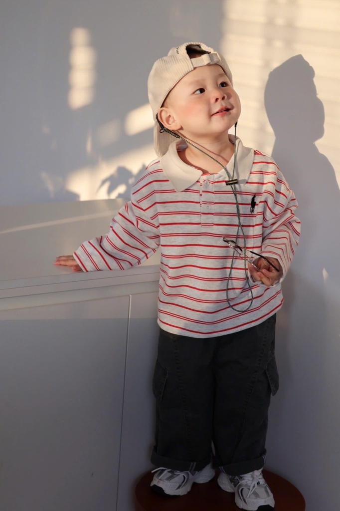 Cb423-Combo 2 áo polo dài tay kẻ ngang cho bé