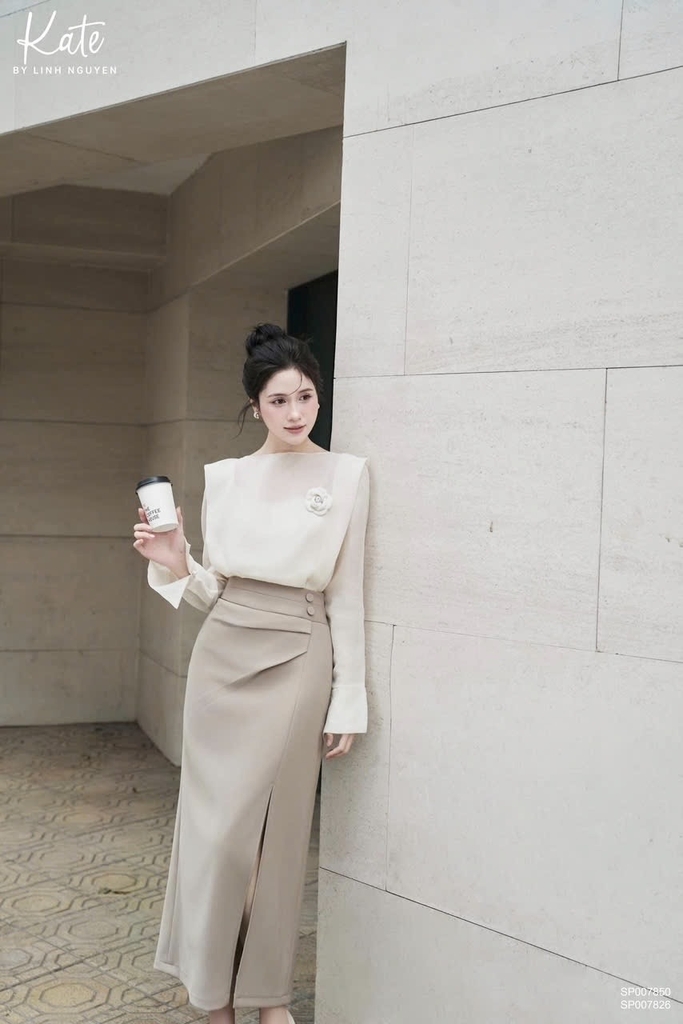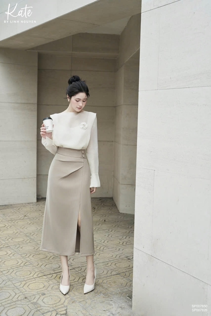Cv014- Chân váy bút chì phối cúc bọc xẻ tà
