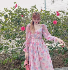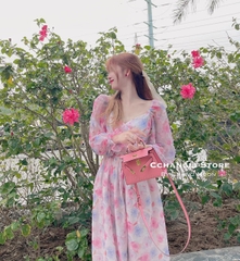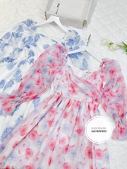 Đánh giá Đầm voan hoa tơ 2 lớp chéo ngực 2 màu xanh, hồng
