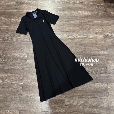 DAM114- đầm polo dáng xoè thêu ngựa màu than dài 115cm