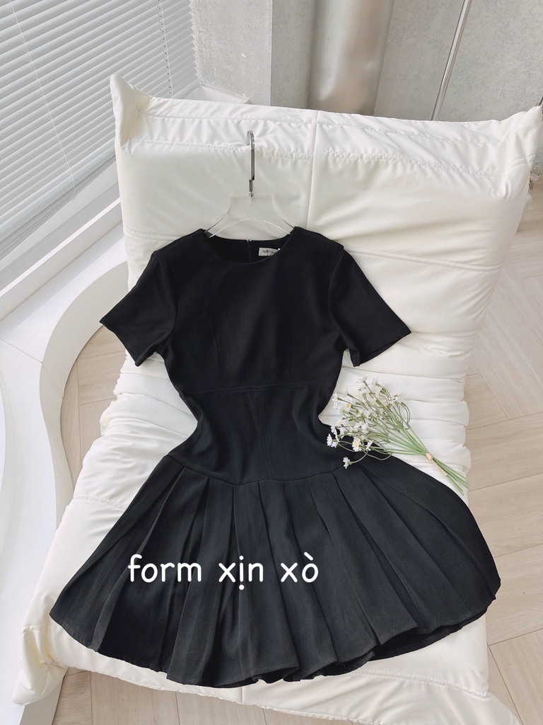 ☘️ dam160- VÁY ĐEN XẾP LI PHỐI LI dáng ôm🌷