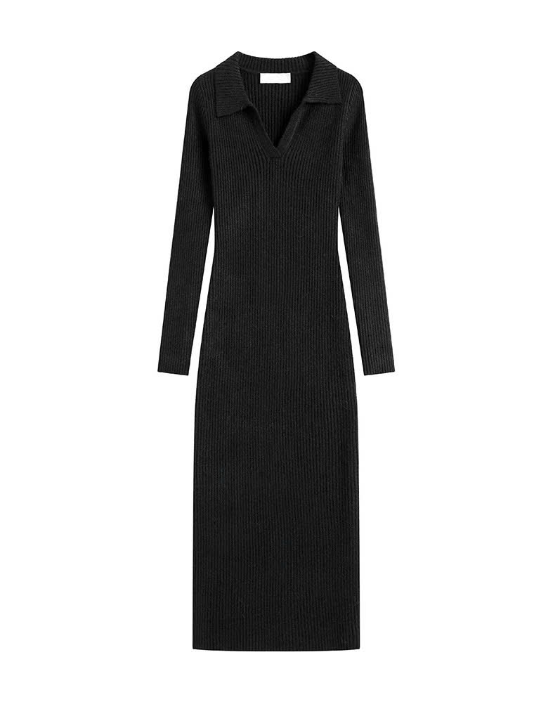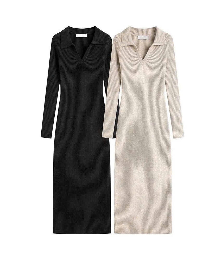Dam186- đầm len tăm cổ đức 2 màu đen- be dáng dài 110cm