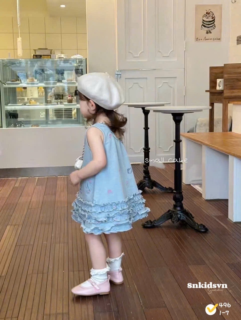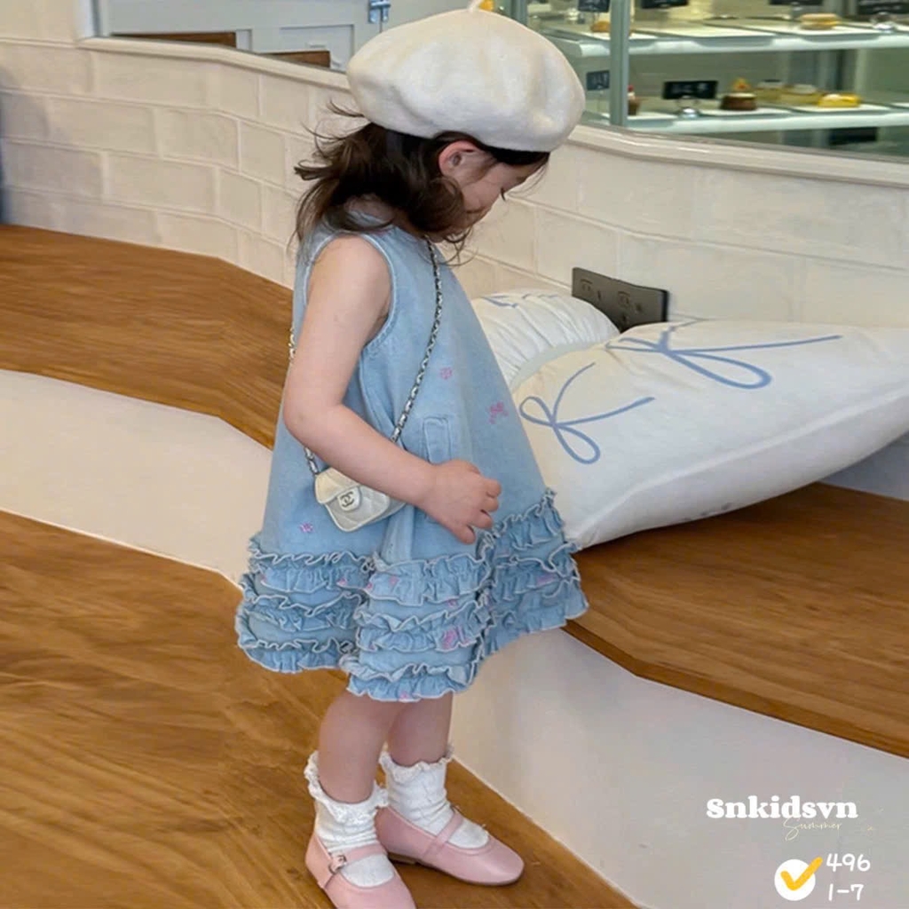 damgai01- Đầm jeans suông viền bèo thêu hoạ tiết