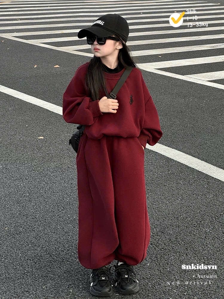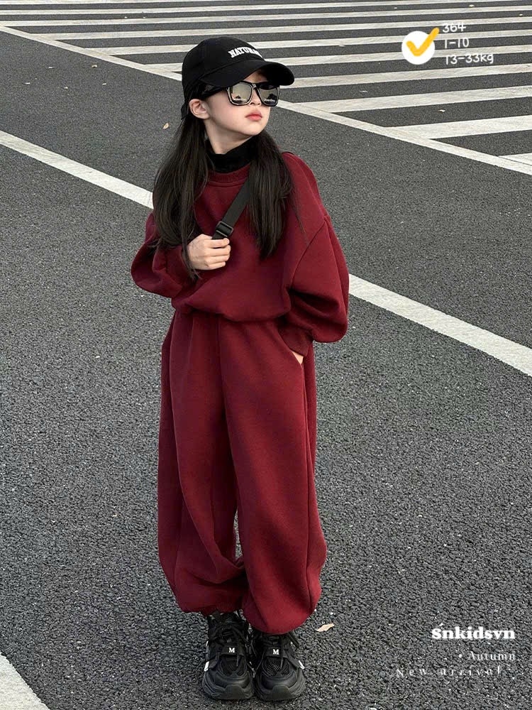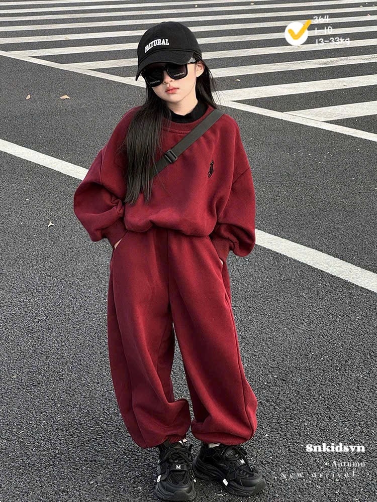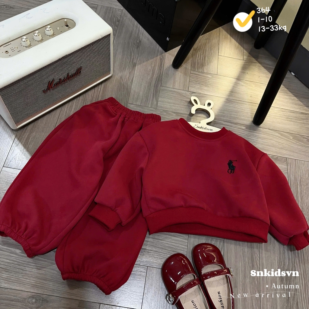 [Max 39kg] Bt742- Bộ nỉ hai da mau đỏ thêu ngựa dáng dài
