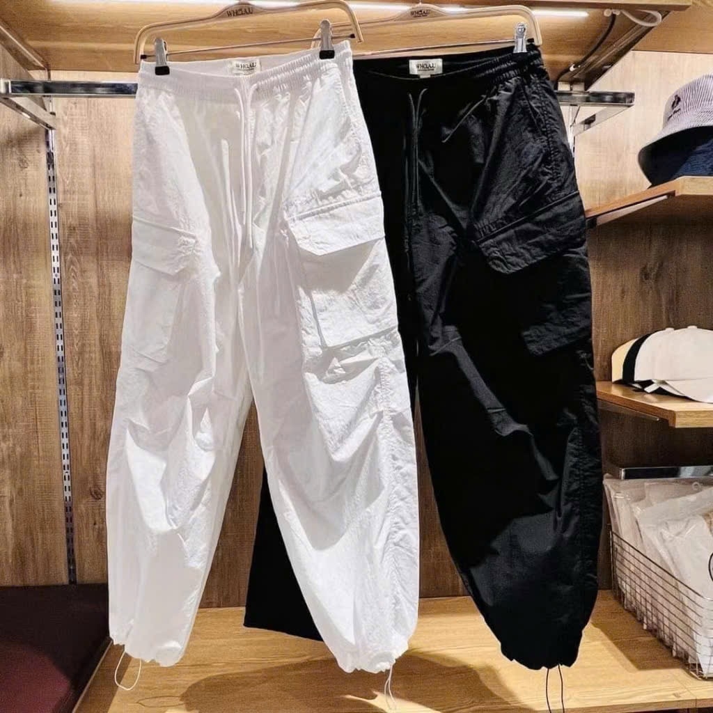 Quan071-QUẦN GIÓ TÚI HỘP BO ỐNG 2 màu đen trắng