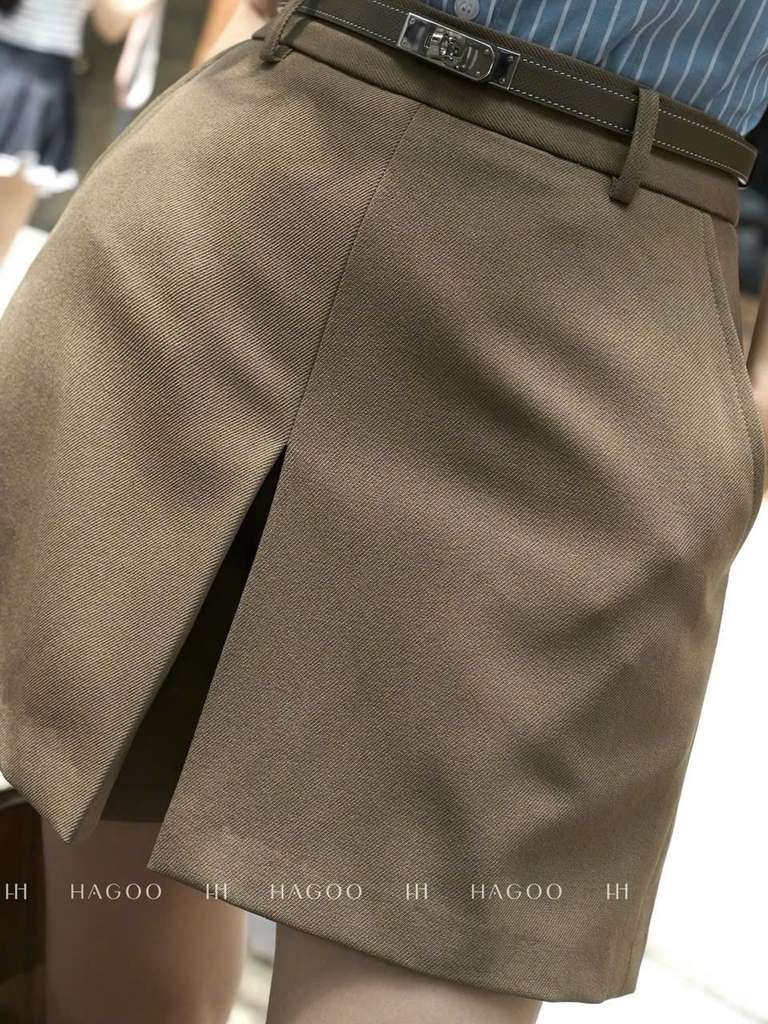 Quan074-Quần váy ngắn xẻ trước 2 màu nâu đen