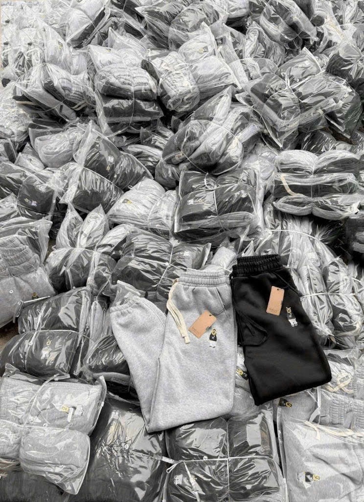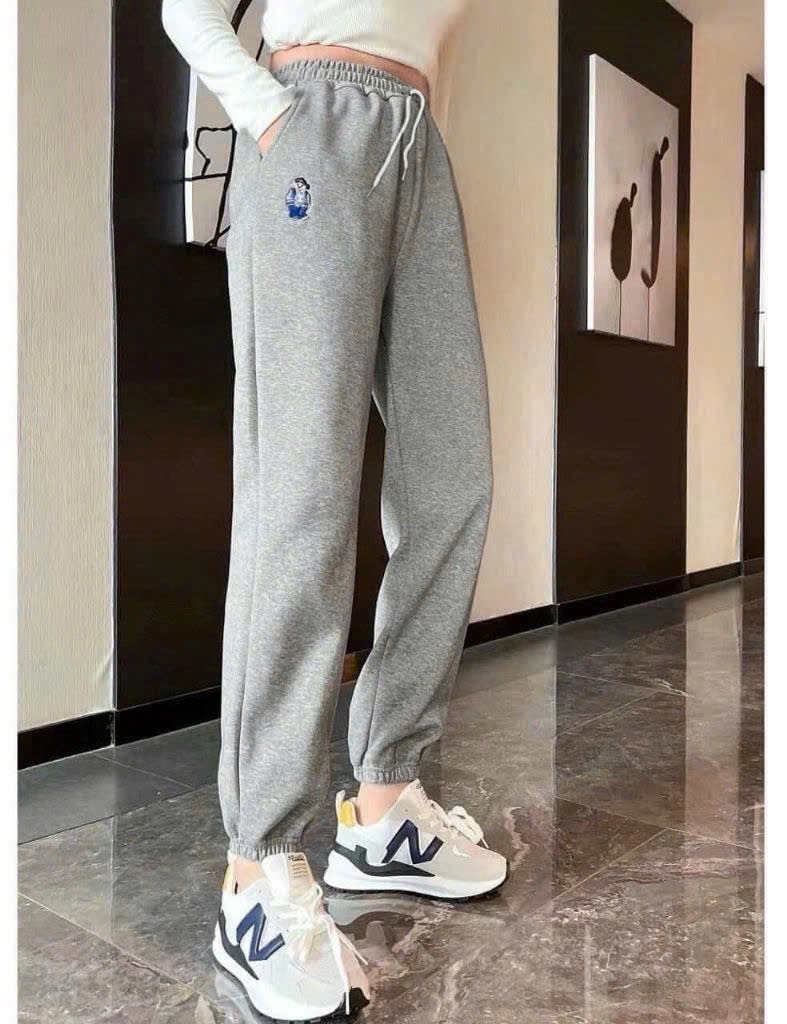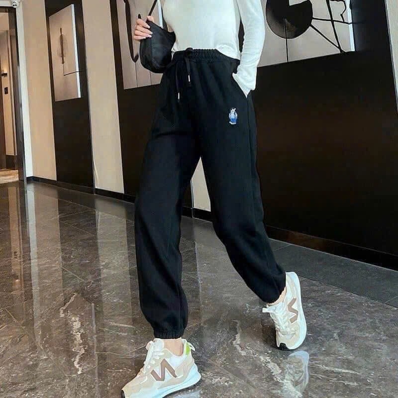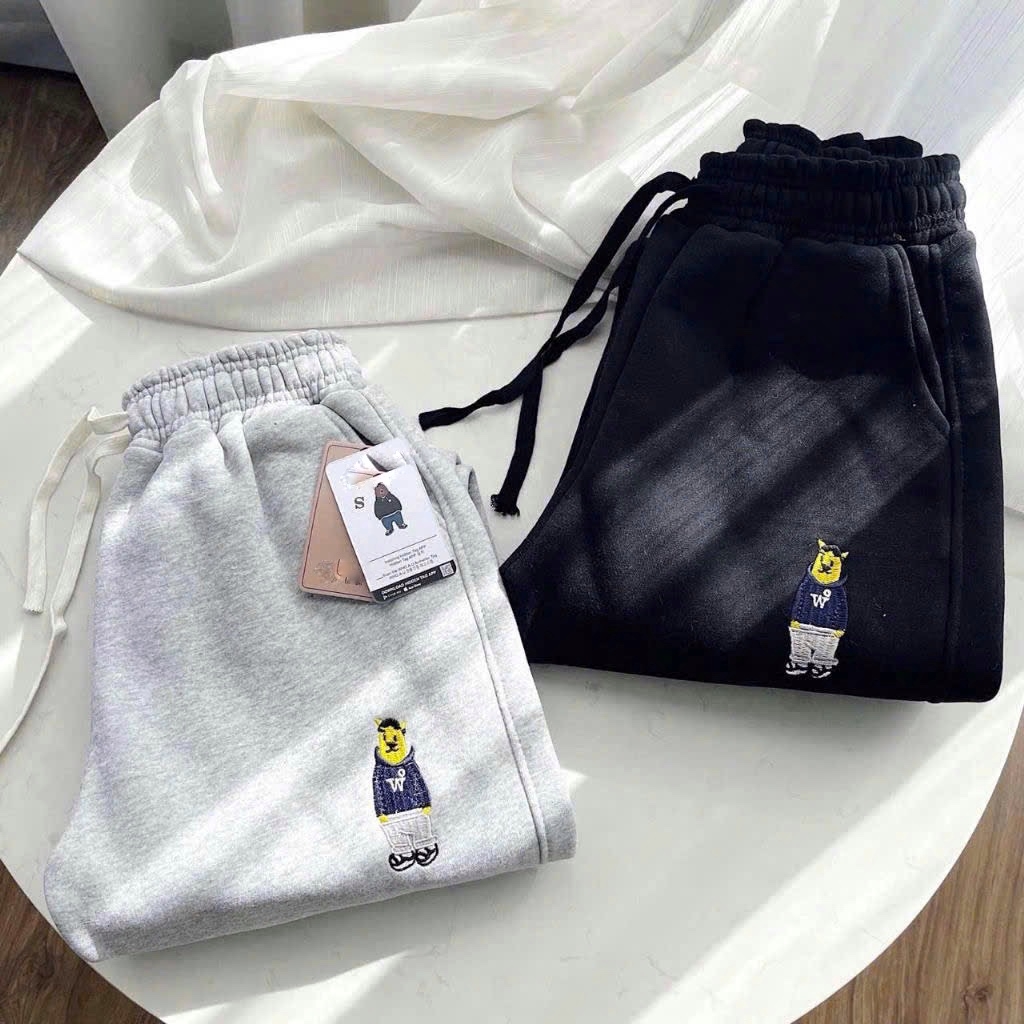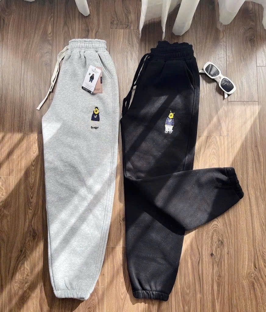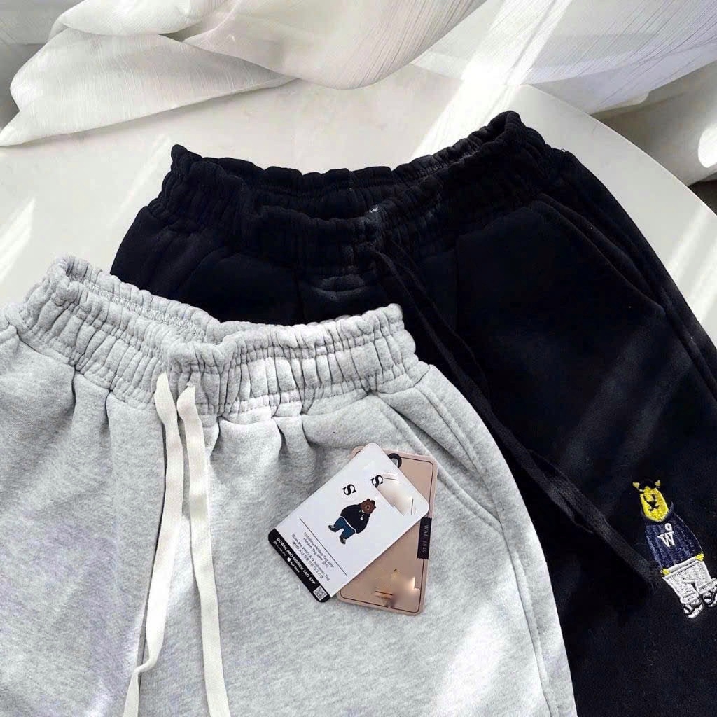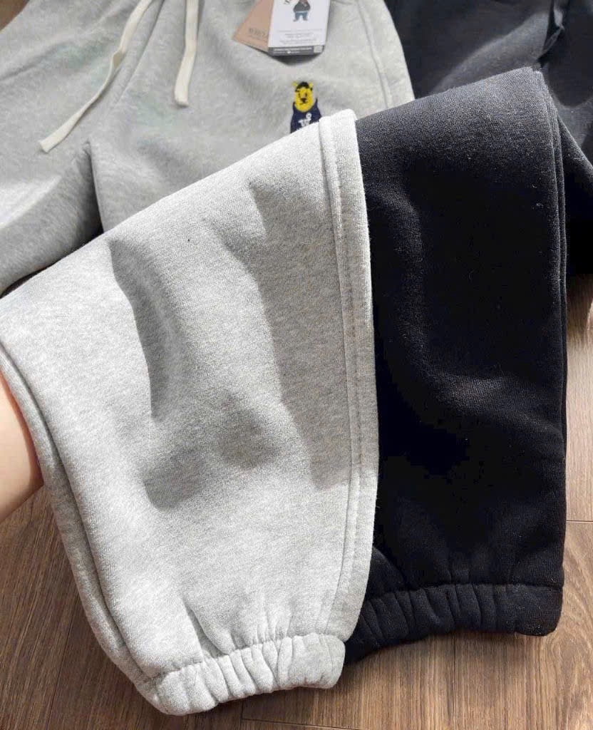 Quan085- Combo 2 quần nỉ gấu bo ống đen xám