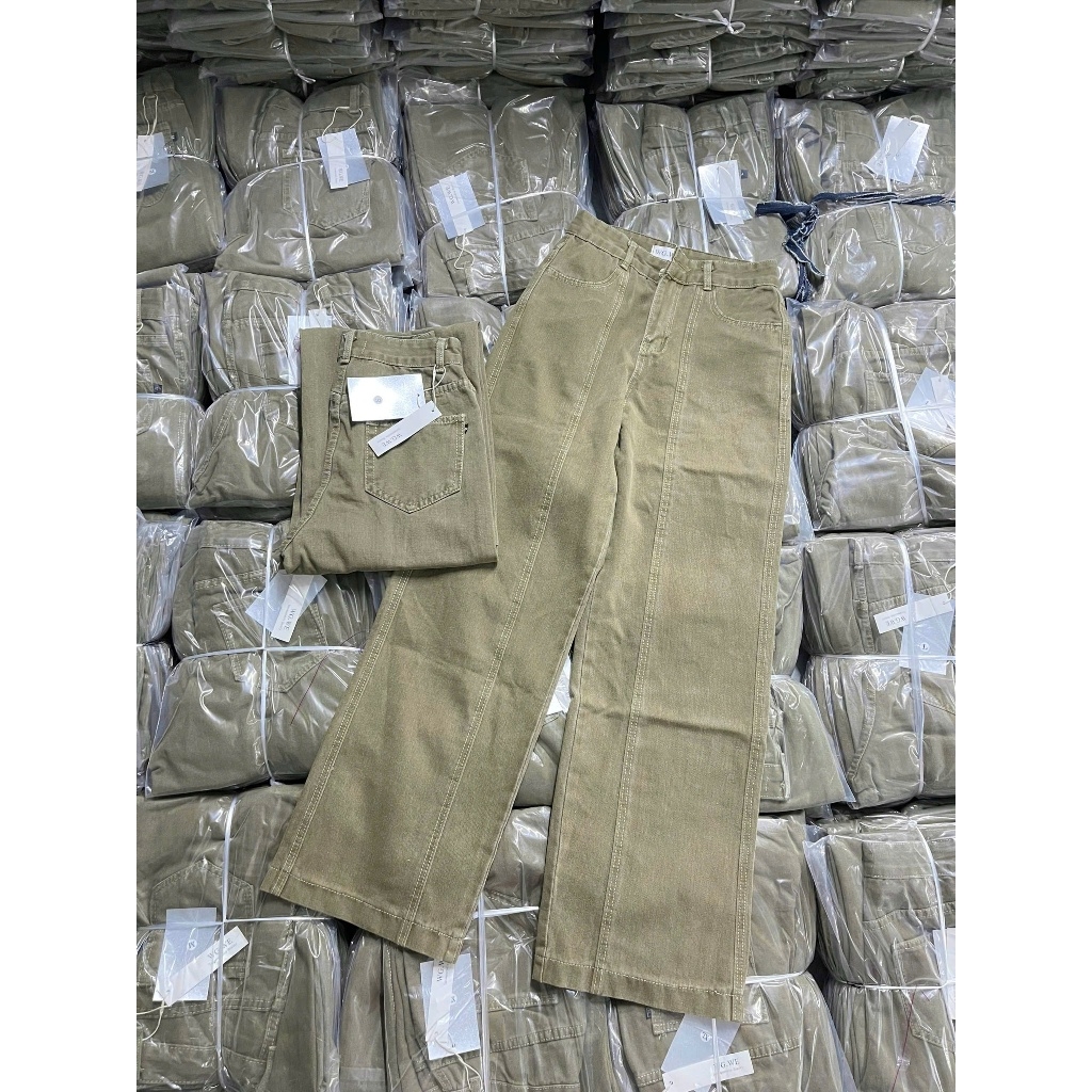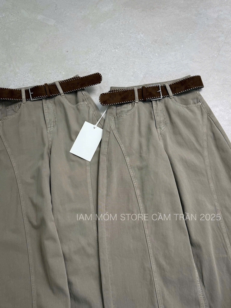 Quan089-Quần jean suông nâu dáng rộng phối viền tặng kèm đai