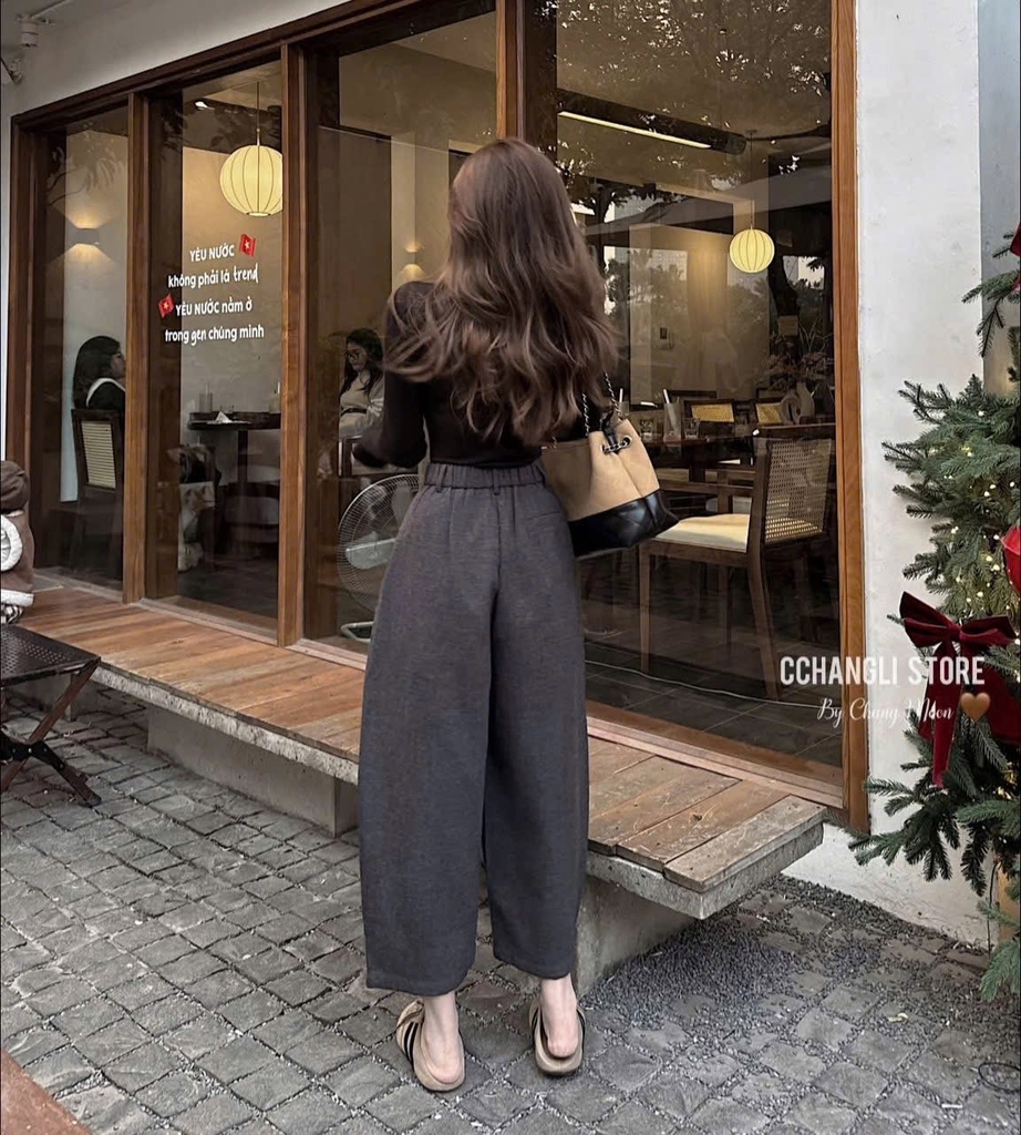 Set855- Bộ nỉ xám in chữ SLOW quần suông