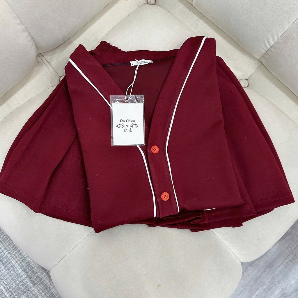 SET259- Set đỏ chạy viền mix CV có lót quần chất mì dày dặn