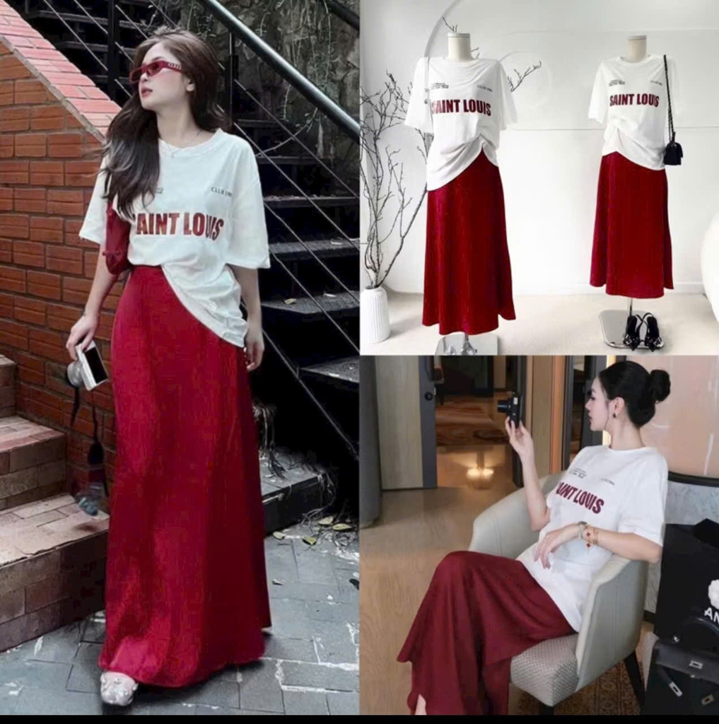 SET343-❗️SÉT ÁO CỘC TRẮNG CHỮ SAINT MIX CV ĐỎ❗️
