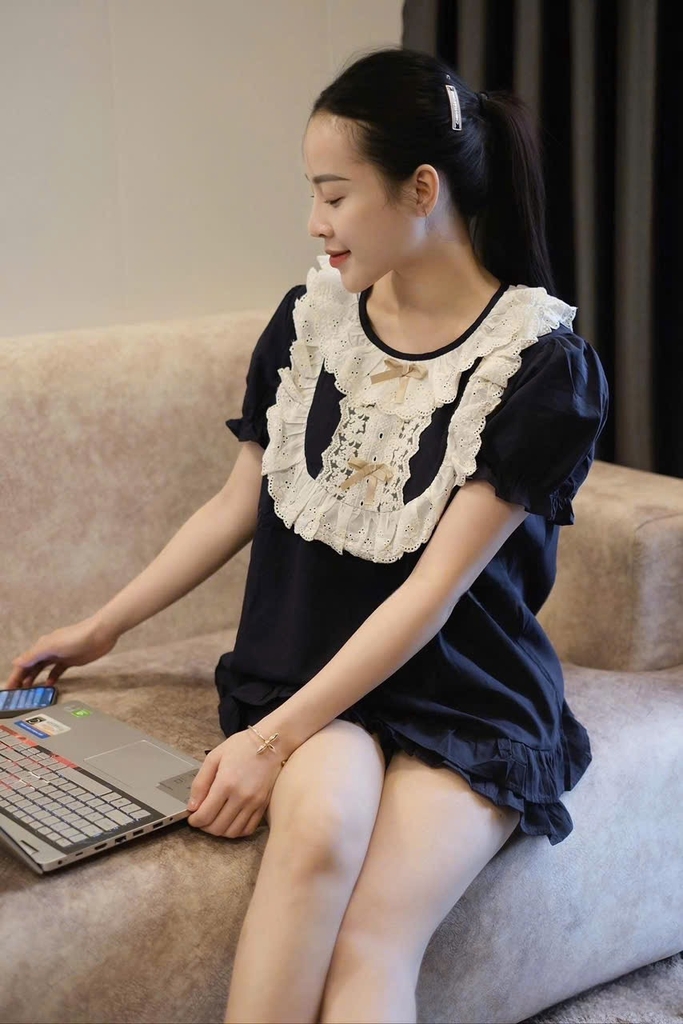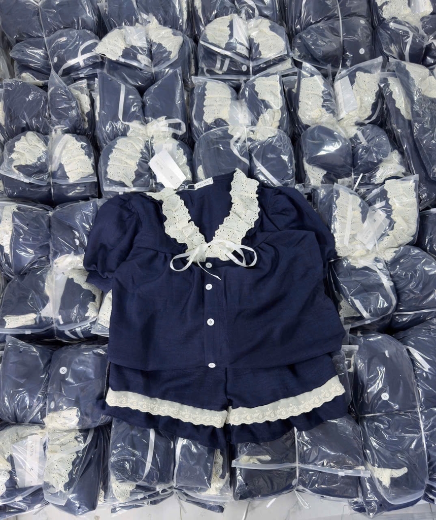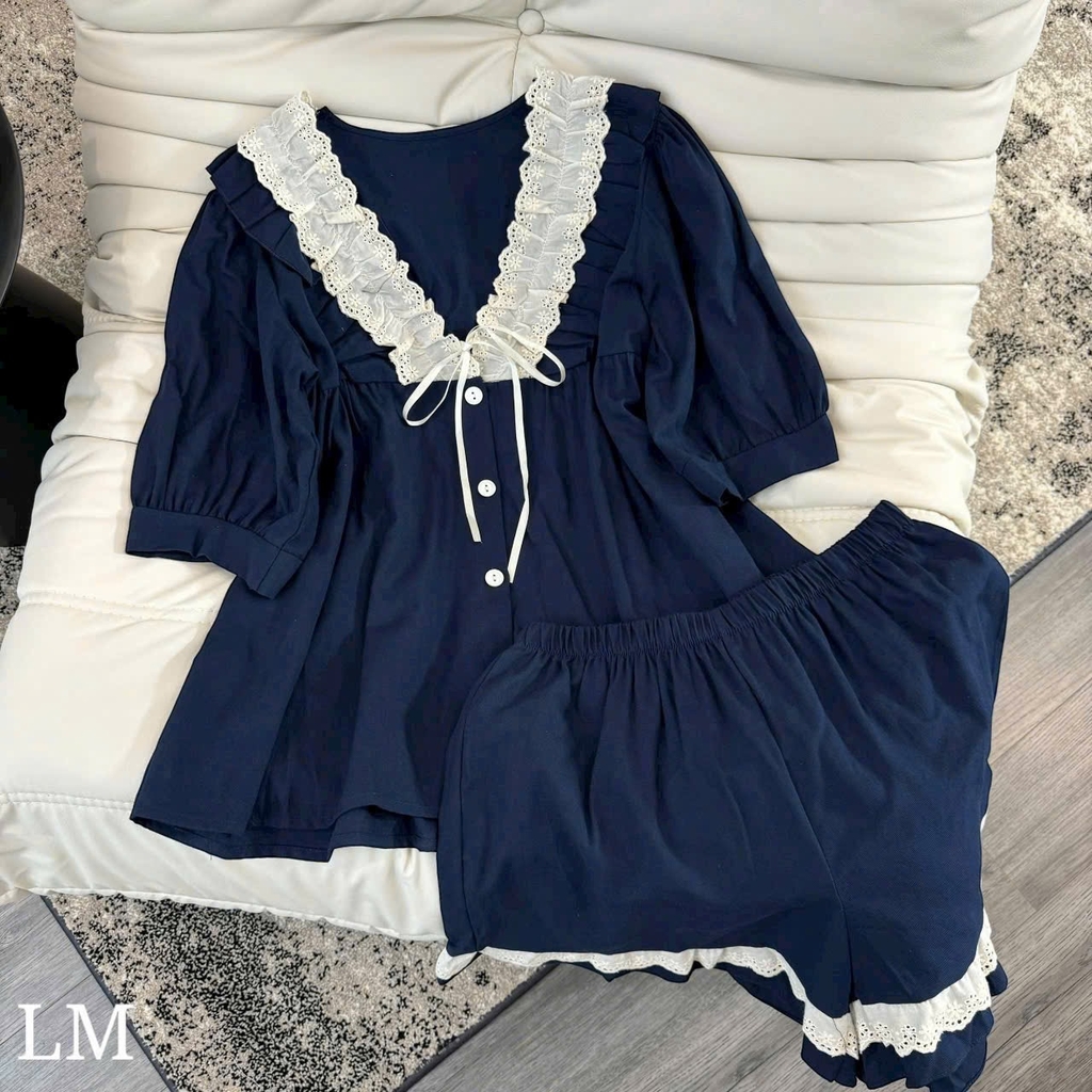 Đánh giá SET494- Bộ mặc nhà xanh than vuền ren chất đũi lụa