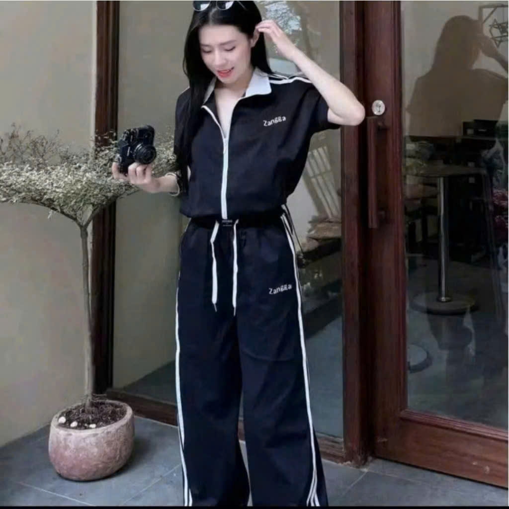 SET731- Set quần áo gió dài tay kéo khoá 2 màu đen trắng