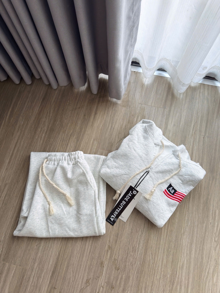 SET744-Bộ nỉ dày thu đông có mũ bo gấu